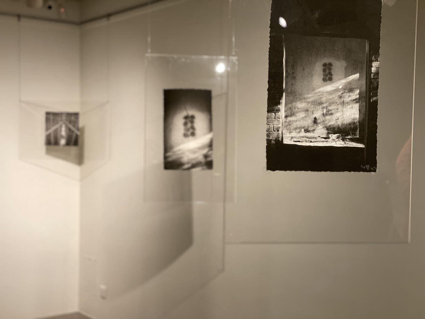 录节目这天下午,她用视频连线的方式带我看展:铂金印相、宣纸、明矾、轻纱、光影、声音,这些物料和影像模拟出来的混沌潮湿的记忆片段,构建出一个时空错置的独特所在。视觉艺术的魅力很难用语言转译,我们顺着她小时候学摄影的经历,一路从她的家乡瑞安聊到现在定居的香港,也聊了聊展览内外与记忆有关的人事物。