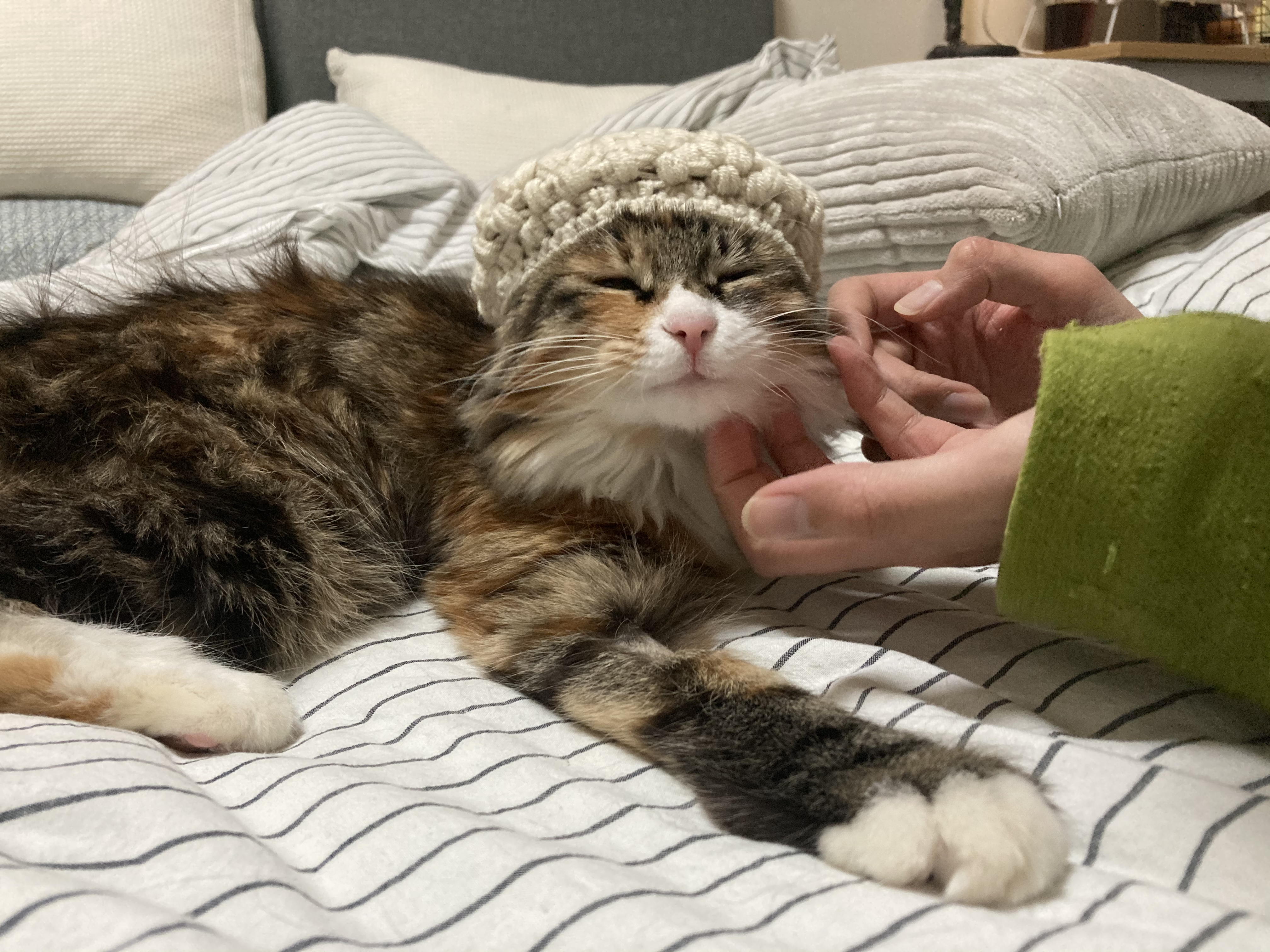 2。养猫再快乐也总有些个劝退时刻:比如李肉松被尿了四床被子,尿到清晨崩溃尖叫;哈拿被小猫咬到生无可恋,半夜进行猫德教育……