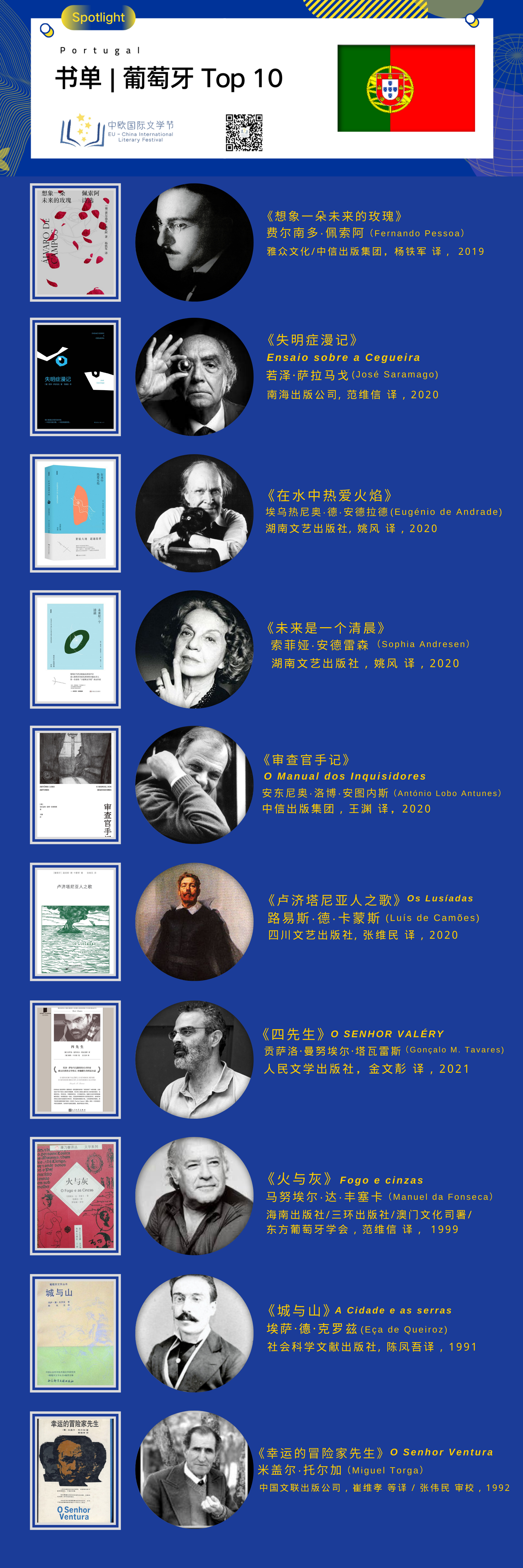 本次文学之旅,中欧国际文学节团队特别推荐葡萄牙 Top 10 文学佳作中译本,入选作品排名不分先后。和其他书单一样,我们的书单也具有一定的主观性,并不是绝对权威的。我们的出发点,是希望推荐给读者朋友们一些好书,在此特别感谢中欧国际文学节团队及出版业同行的专业建议。