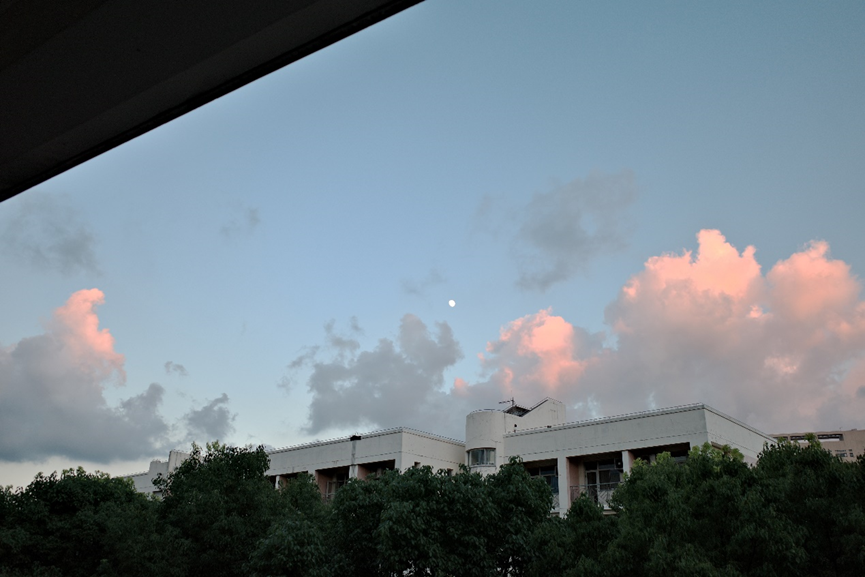 只能看到一角的晚霞