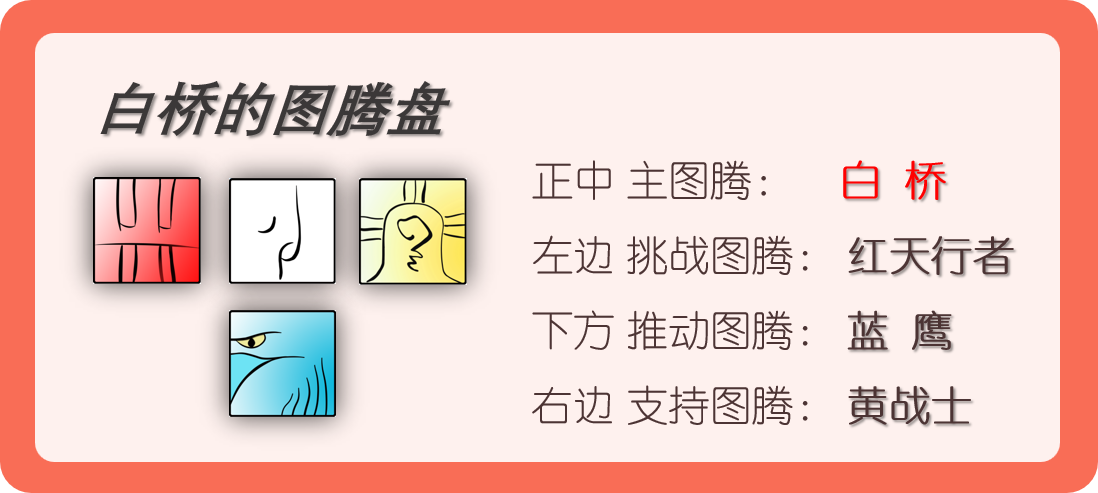 白桥为玛雅主图腾的人,天生具有很强的连接能力,与人的连接、与事物的连接,都可以做到毫无卡点。ta们喜欢通过聊天去涉猎新的交际圈,扩展新的知识面。与陌生人沟通很快能赢得对方的信任,对新的事物很快能提炼出框架概要。