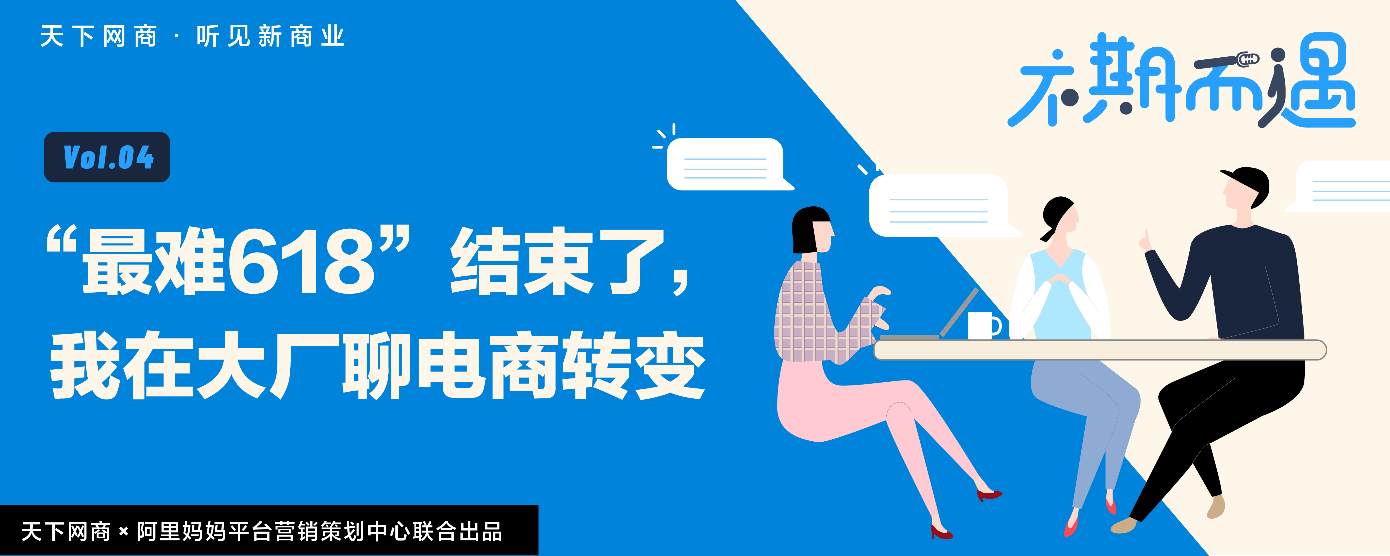 本期是由天下网商与阿里妈妈平台营销策划中心联合出品的播客特辑——不期而遇,我们邀请到的嘉宾是天下网商副总经理李然、资深媒体人宽宽和阿里妈妈平台营销策划中心的大沫同学从媒体、平台视角,用轻松愉悦的方式,分享互联网新商业领域的动态干货、潮流趋势和热门话题。