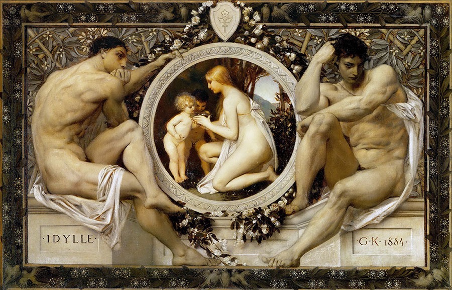 克里姆特的老师称:克里姆特出生于1862年,他艺术天分非常高,15岁就考入维也纳工艺美术学院,在古典绘画上有很深的造诣,他的早期学院派作品《田园牧歌》让他年纪轻轻就得到了维也纳官方艺术界的承认,博物馆、歌剧院等公共建筑,都请他去画壁画。