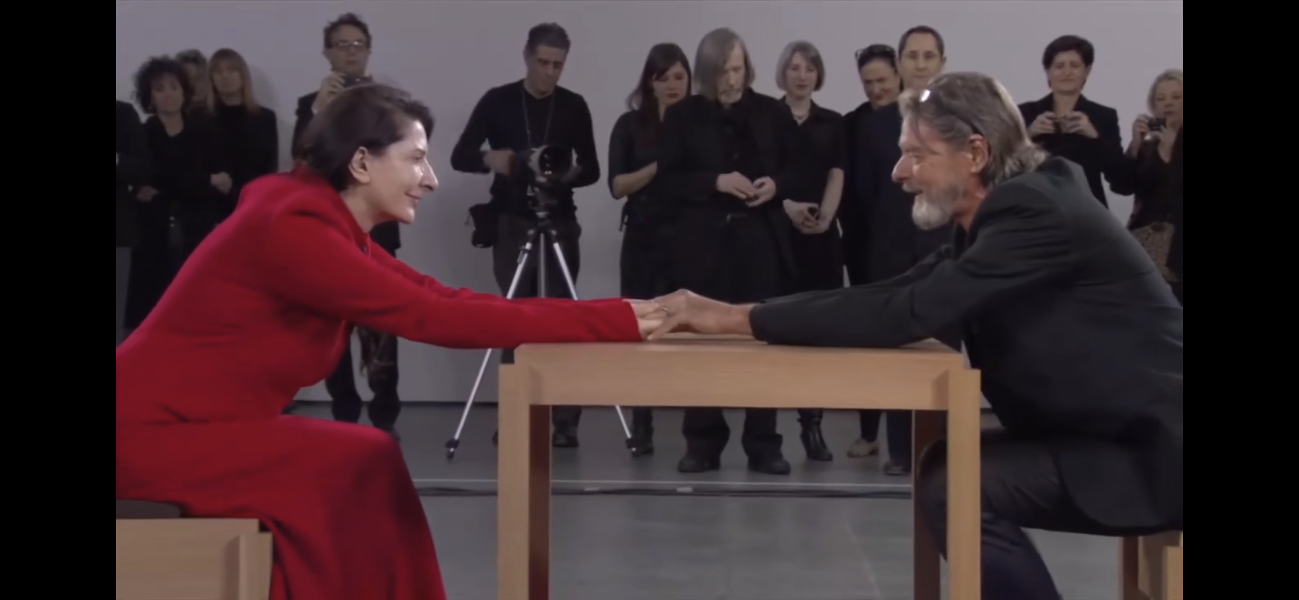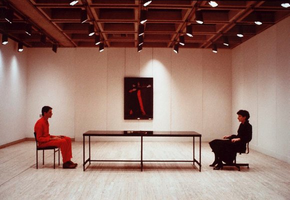 玛丽娜与每一名坐在她面前的观众相互凝视,每个人凝视30s,每天七个半小时,每周六天,持续3个月。她全程基本面无表情,直到乌雷出现,她流下了眼泪。