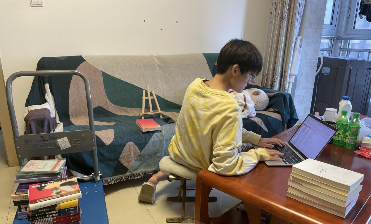 图|正在为网店上架图书的小侯