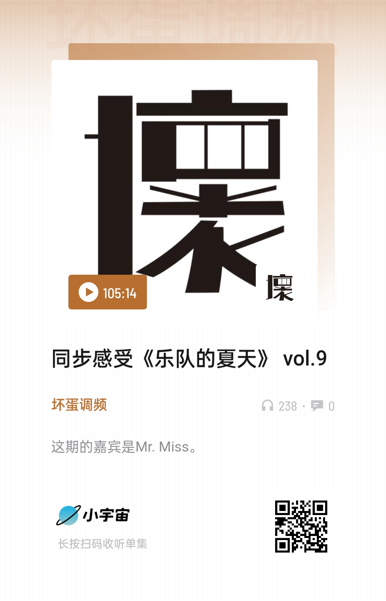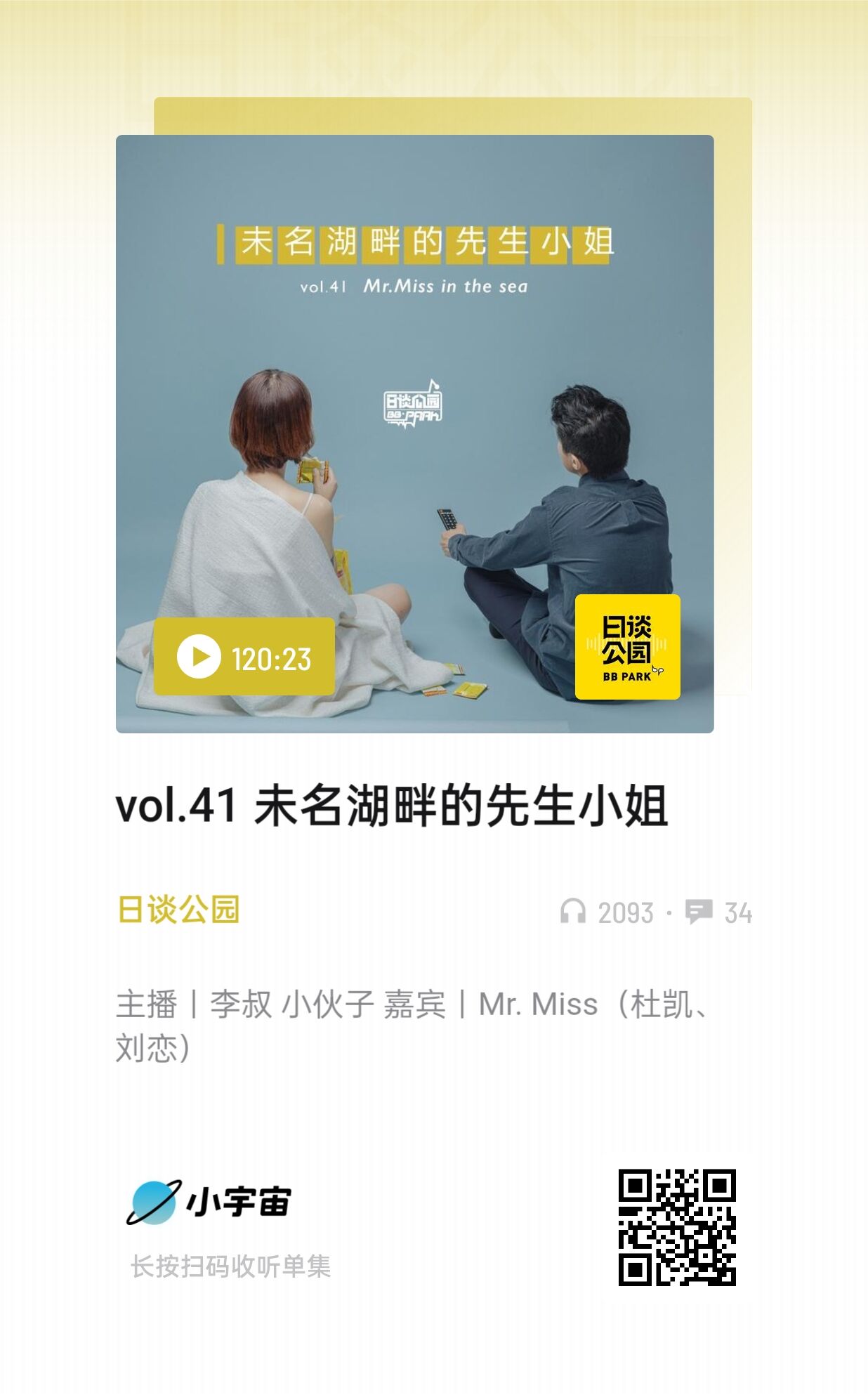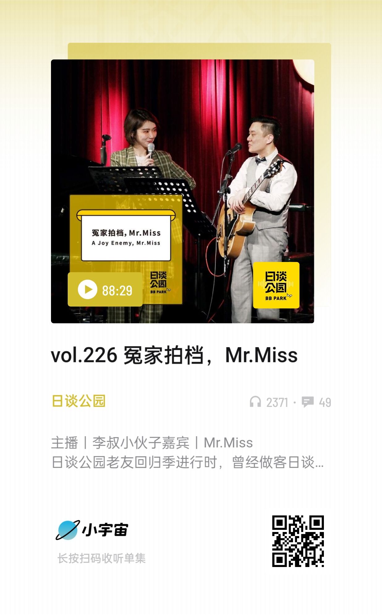播客的形式很包容又丰富,远不是任何人三言两语能概述的,我喜欢Mr.Miss在一起时的表达状态和输出,也希望有缘人去听一下,只听声音,人的专注力会更集中。