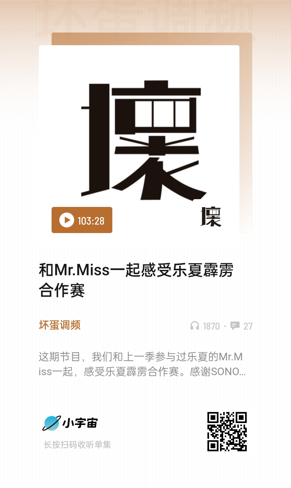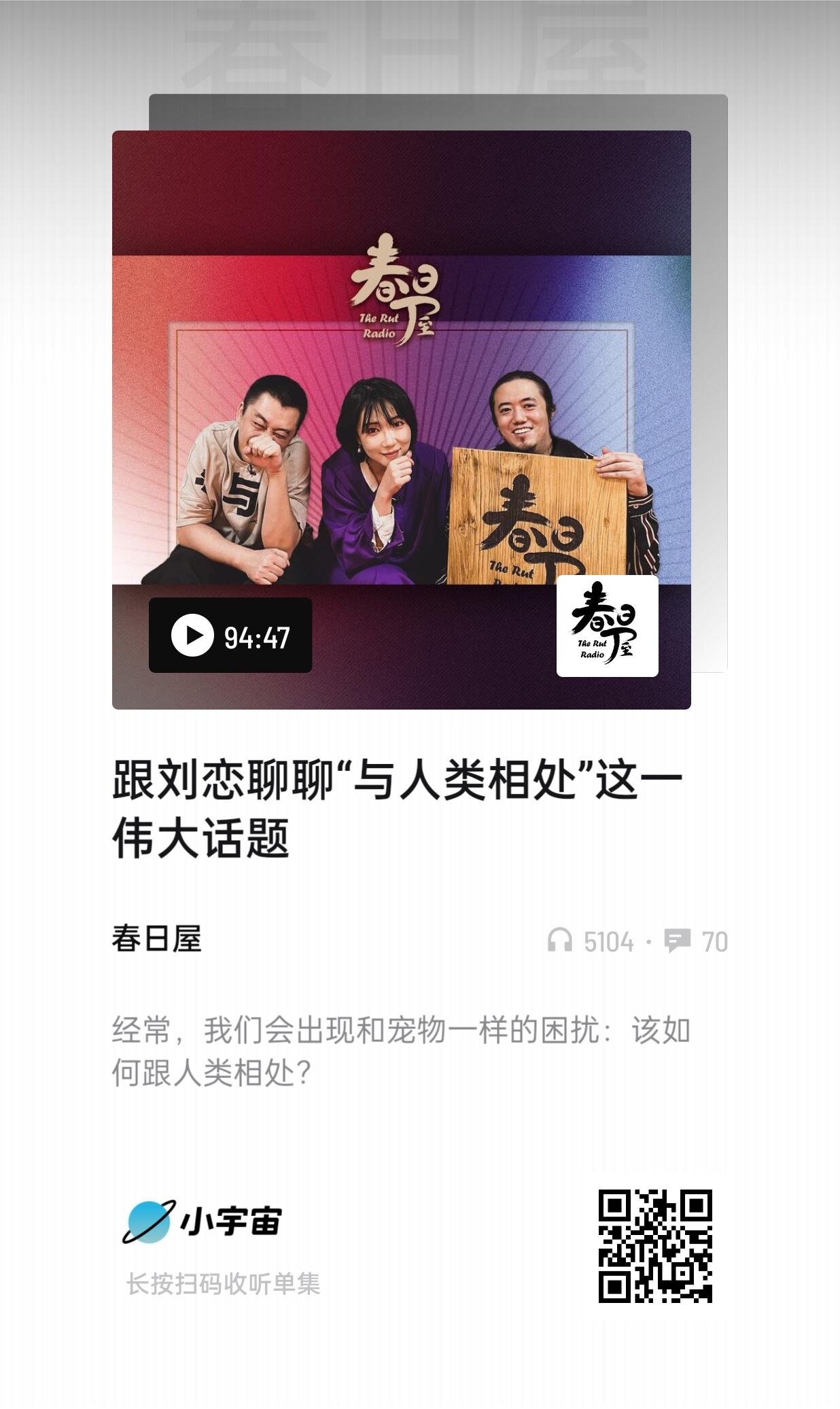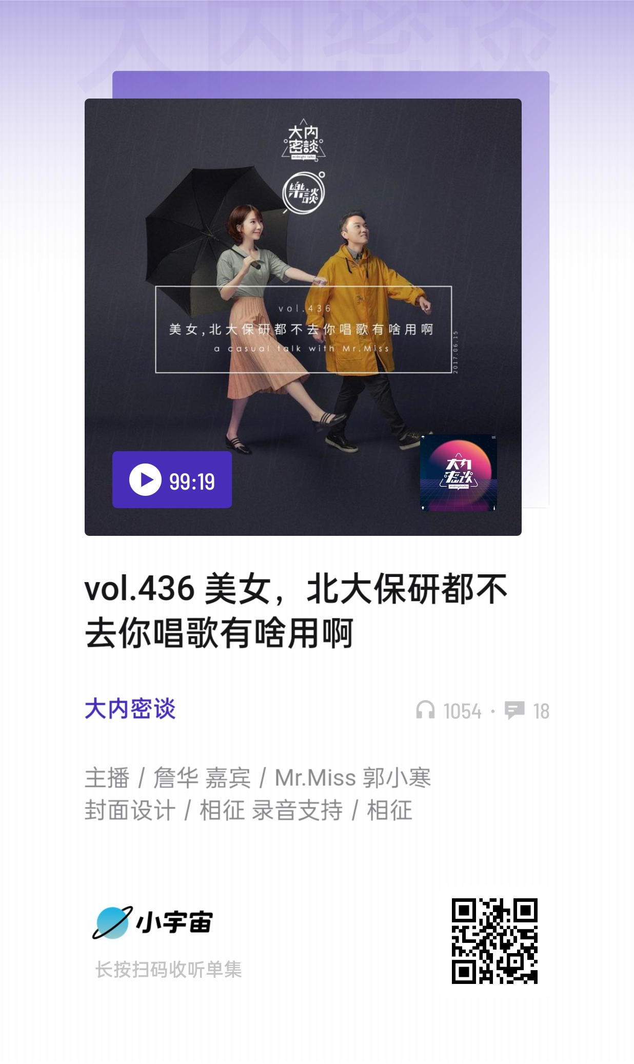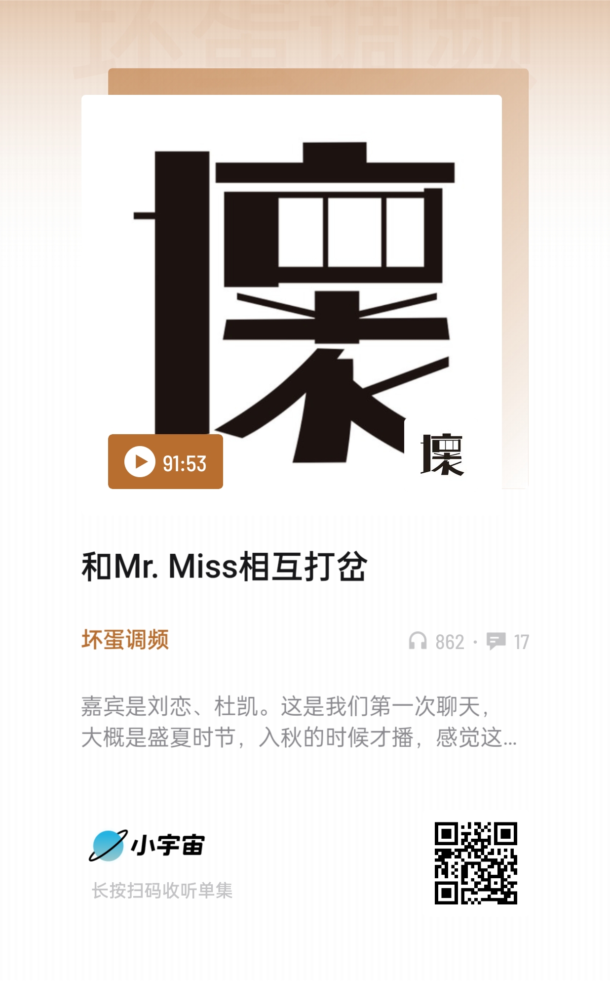 播客的形式很包容又丰富,远不是任何人三言两语能概述的,我喜欢Mr.Miss在一起时的表达状态和输出,也希望有缘人去听一下,只听声音,人的专注力会更集中。