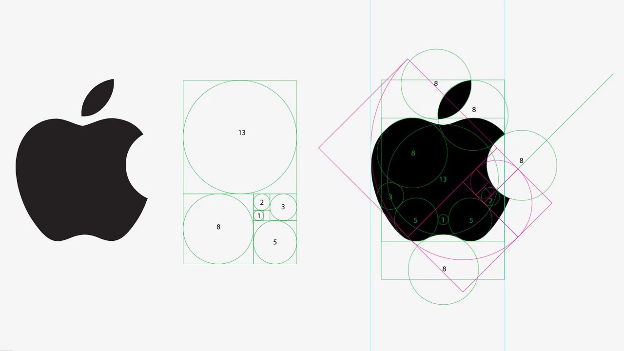 苹果公司logo的设计方式也运用了黄金分割比