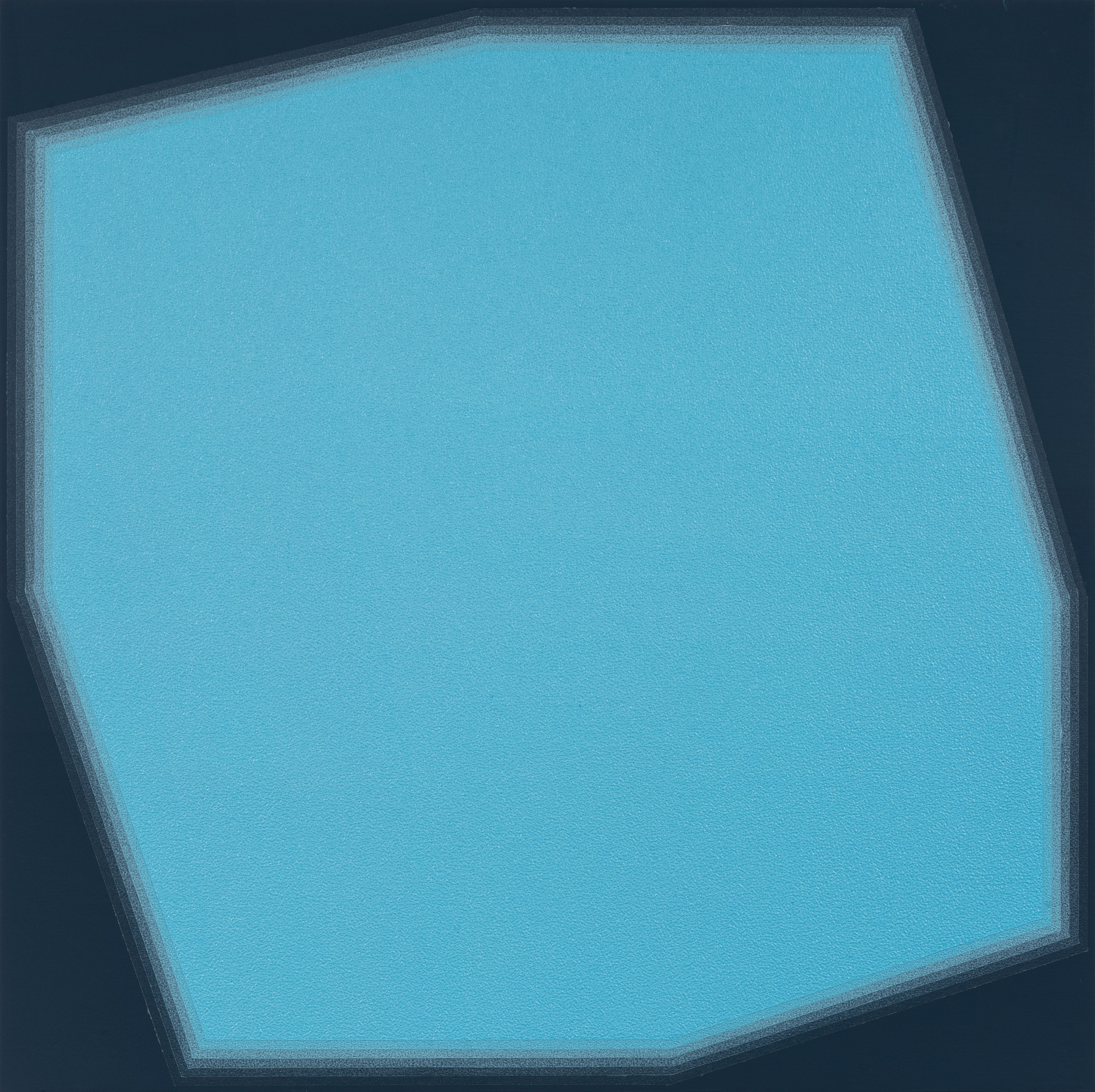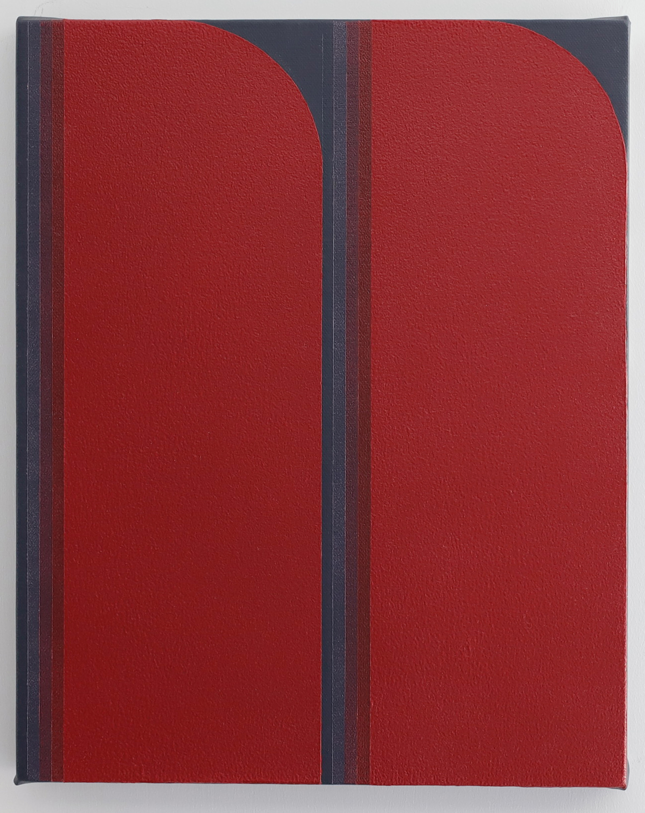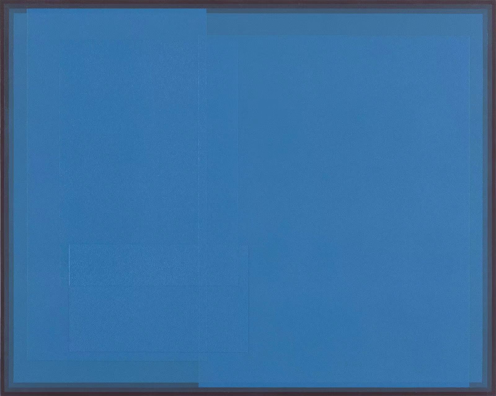 苏艺的系列作品看似极简、硬边、冷峻,但却是把颜料的材质美感用一种温润的方式赋予了硬边风格一种不同的视觉感受。画面弱化了对几何图形的位置经营,着重体会材质变化。从均匀一色滚涂在平面上探索线面位置关系,到对均匀滚涂的分层处理、体会材质厚薄产生的光晕般的细腻。艺术家以理性推敲线、面位置,并结构性的与色彩融合在一起,在平面、空间中寻求纯视觉上的平衡美感。