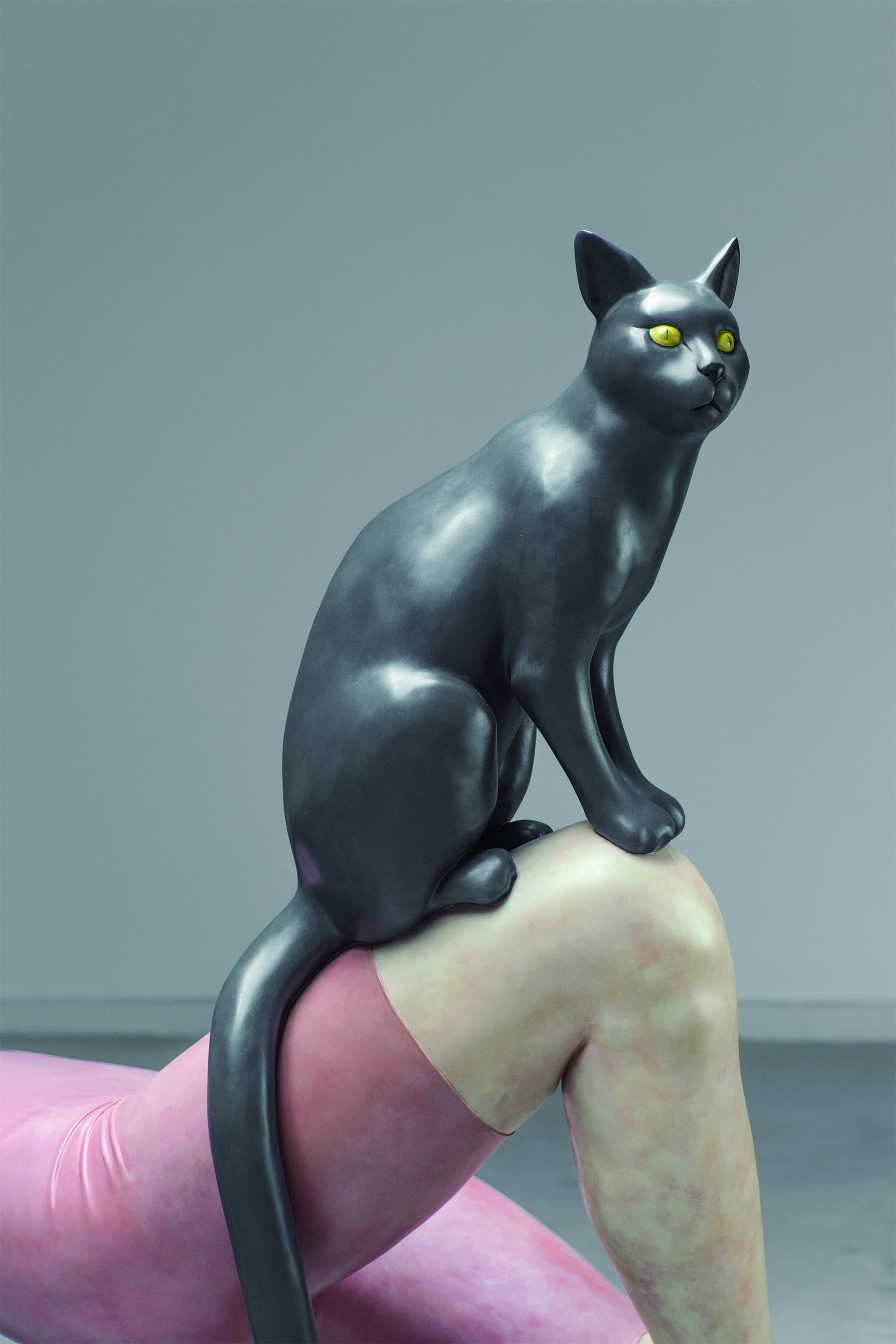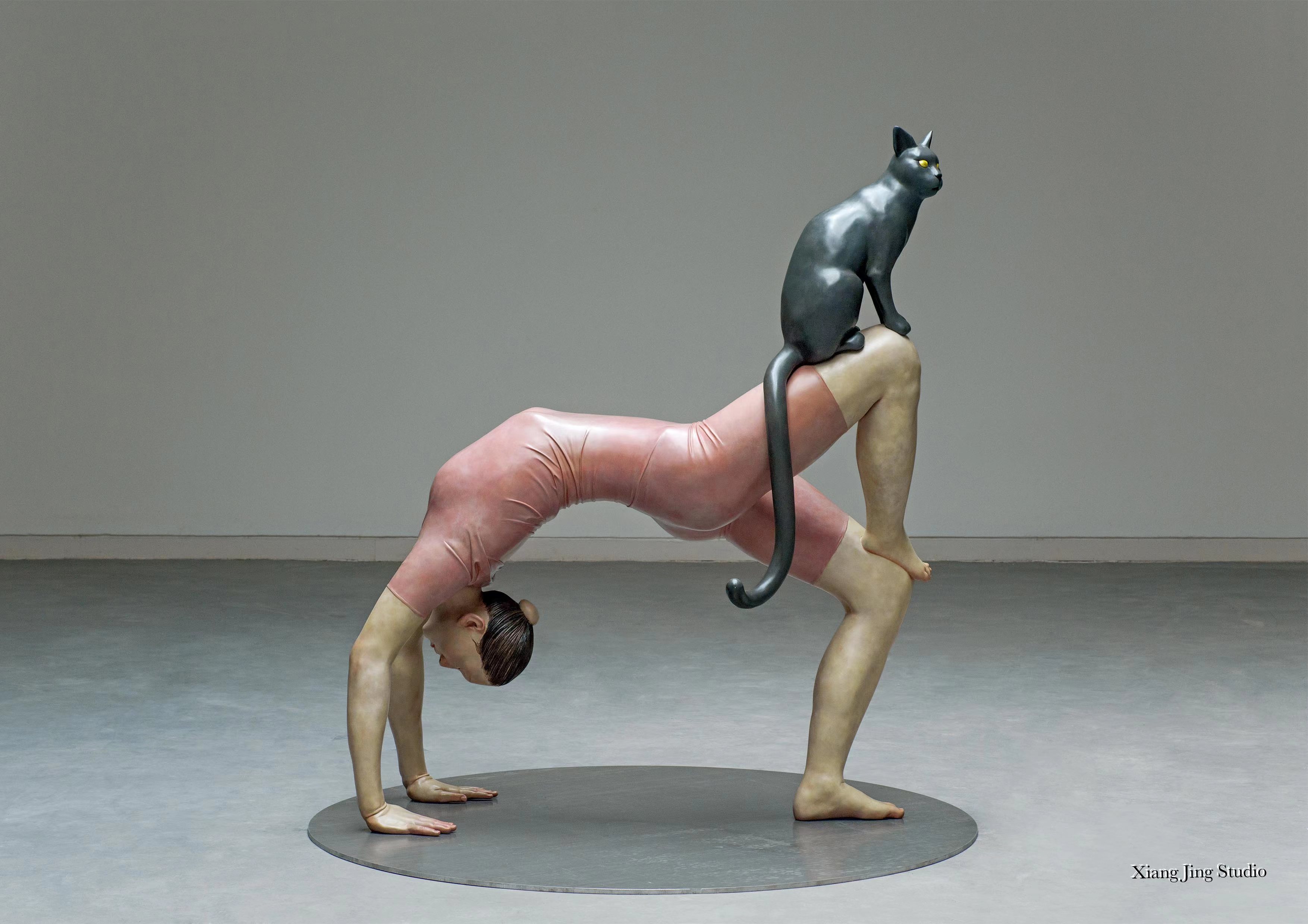 作品采取了双主人公的视角,以至于人们很难断定,究竟呈现杂技姿态的女子是作品的主角,还是那只端坐在女子膝盖上的凝视的猫。至少从“自·在”的题名上看,人们或许更愿意相信那只黑猫才是作品的主角,在女子和它所呈现出的肢体语言上,似乎只有它才是真正“自·在”的。在文学和影视作品中,黑猫往往带着某种神秘的人格性色彩,它的出场总有其动机和目的,以便推动剧情的发展,正如在《大师与玛格丽特》中,布尔加科夫笔下那只与撒旦相勾连的黑猫一样,《自·在》中的黑猫显然也带有它自身的人格,或者说它成了那个做杂技姿势的女子的另一个自我,与他人无涉,漠不关心,又充满审视地反观其自身。