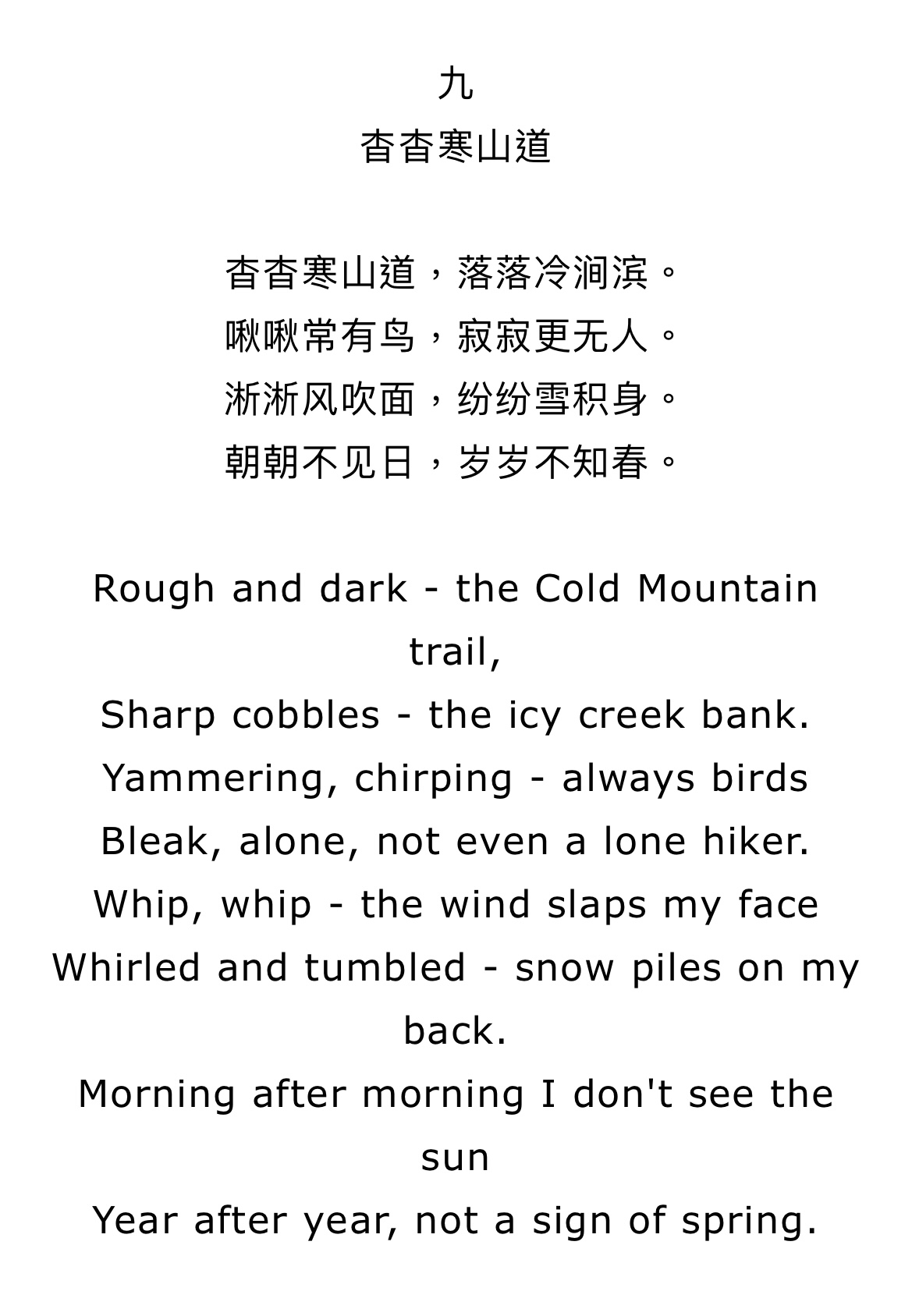 01:17 寒山子第九首的诗 “淅淅风吹面,纷纷雪积身”