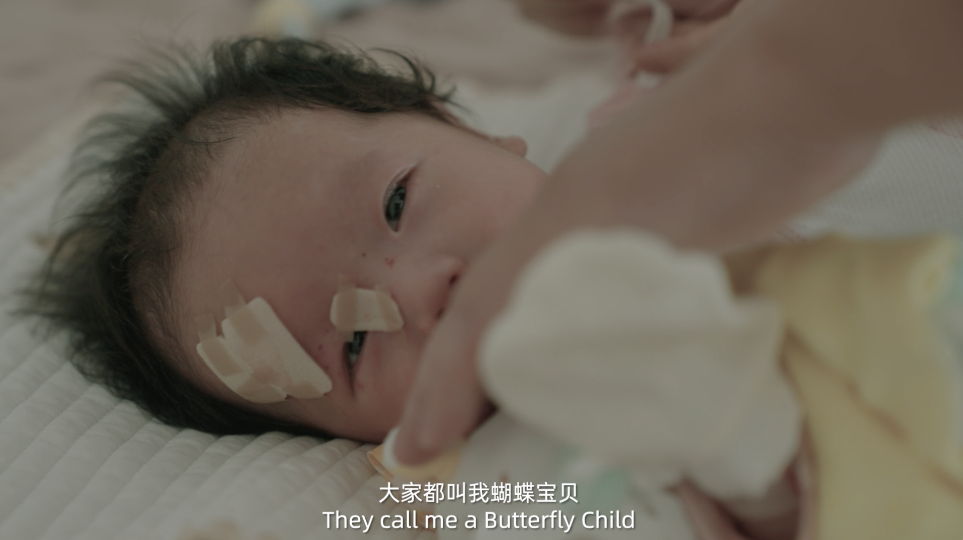 在看完纪录片《看见·蝴蝶宝贝》之后, 我感受到了“疼”。蝴蝶宝贝学名遗传性大疱性表皮松解症,Epidermolysis Bullosa,也常简称EB。患者的皮肤和眼睛、口腔、食道、呼吸道等粘膜组织在受到轻微摩擦后就会发生水疱或血疱,进而创伤溃烂,皮肤"像蝴蝶翅膀一样脆弱"。