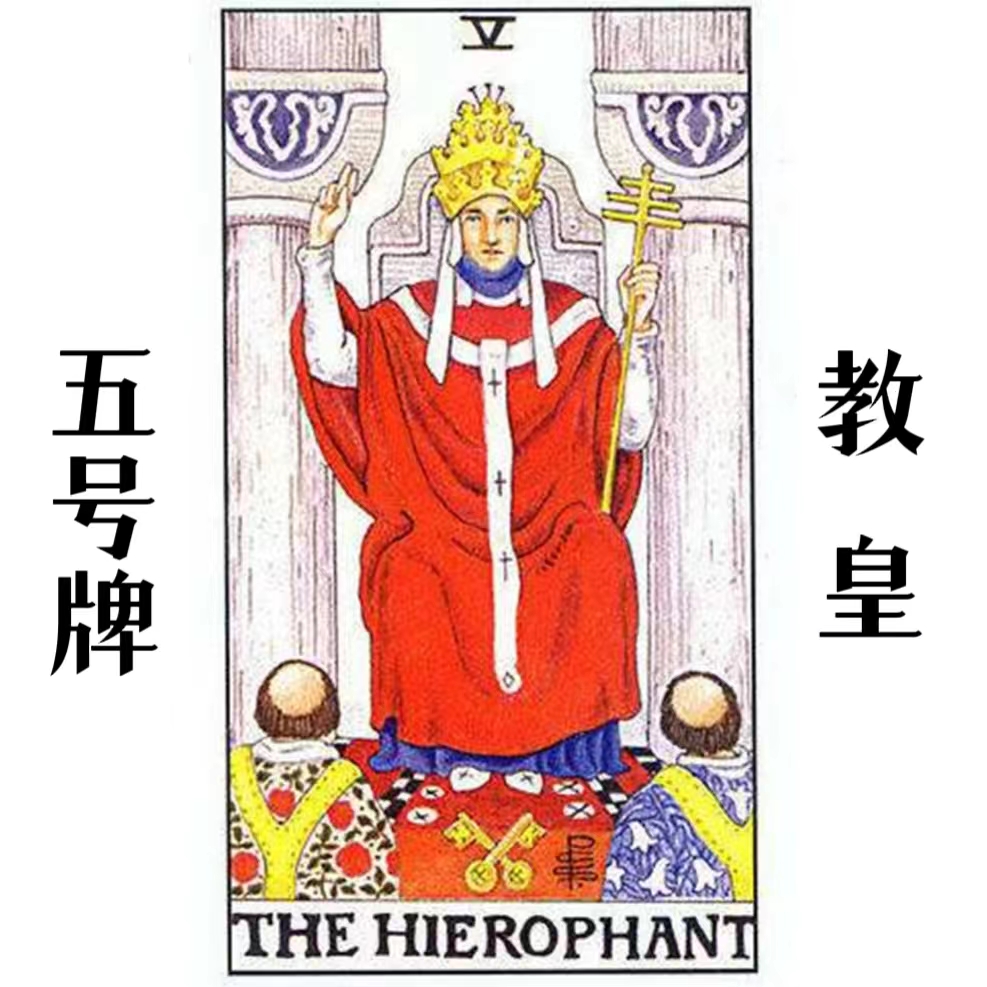 一位宗教领袖占据着一个宝座。他身边的两根柱子是为了加固教堂而建造的,象征支持宗教的外在形势和权力结构。教皇牌代表内在精神发展的外在表现,他会将自己的所思、所想、所悟传递给大众。