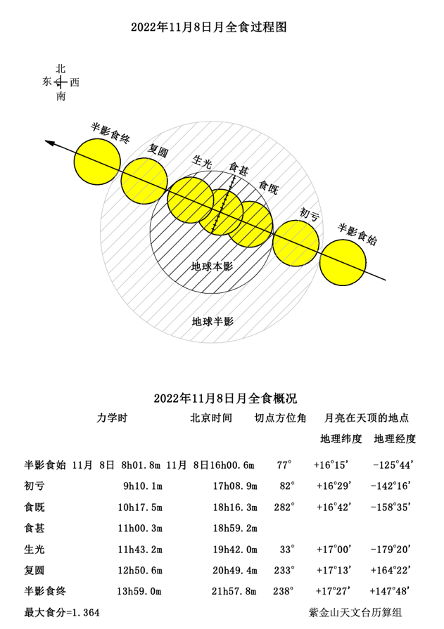 图四:本次月全食过程时间(图片来自紫金山天文台)