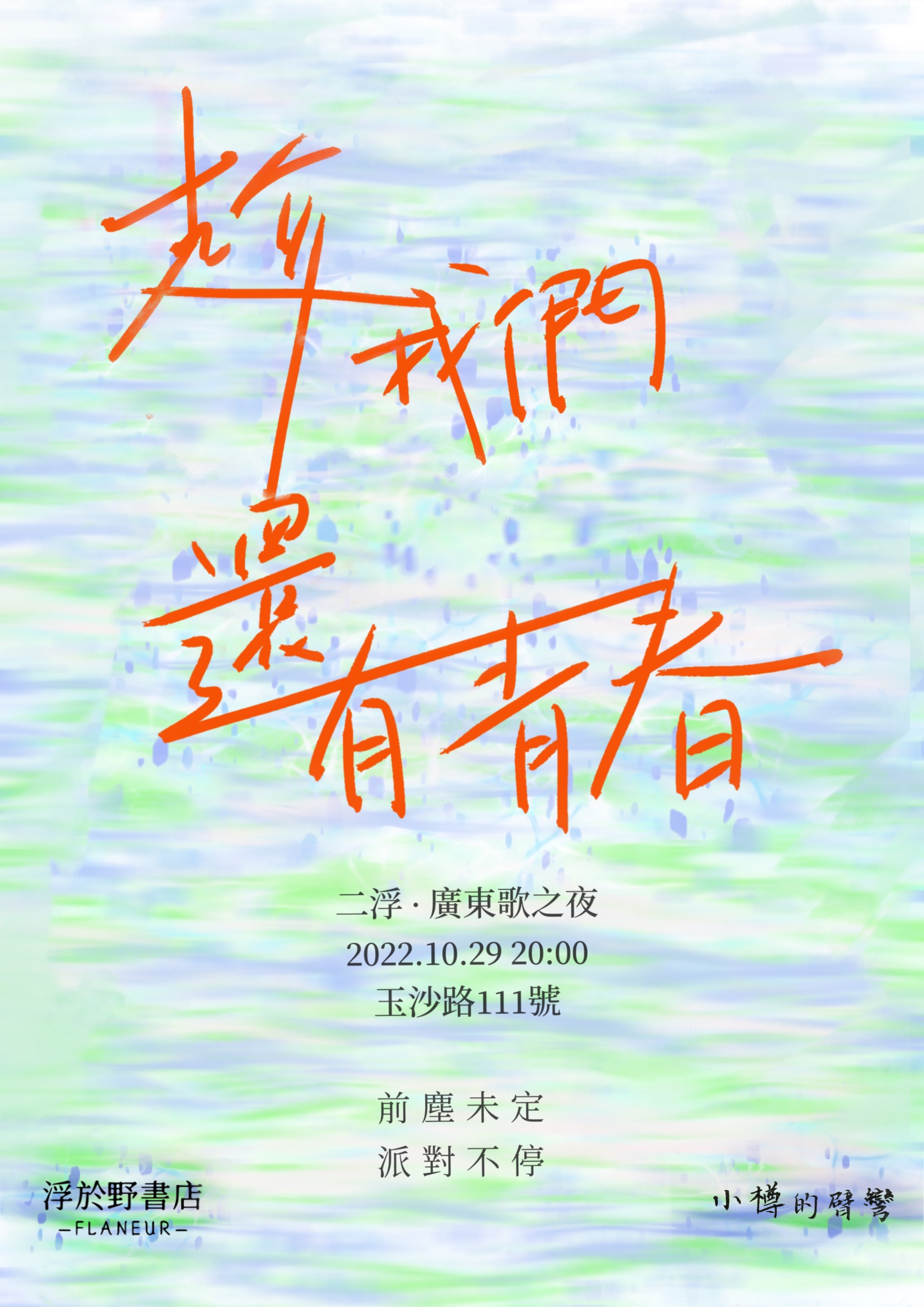 半个月之前,又在浮于野的二店做了一次广东歌的线下活动,是赴约,半年前在浮于野一店门口,做了一次街边歌会,而这次,此情此景,很难再有沿街轻松合唱k歌的情绪,却有了想在室内,聊聊天,听听歌的想法。当选定了主题,内容逐渐搭建起来,我便决定,要录下来,剪成播客,与更多的朋友分享。