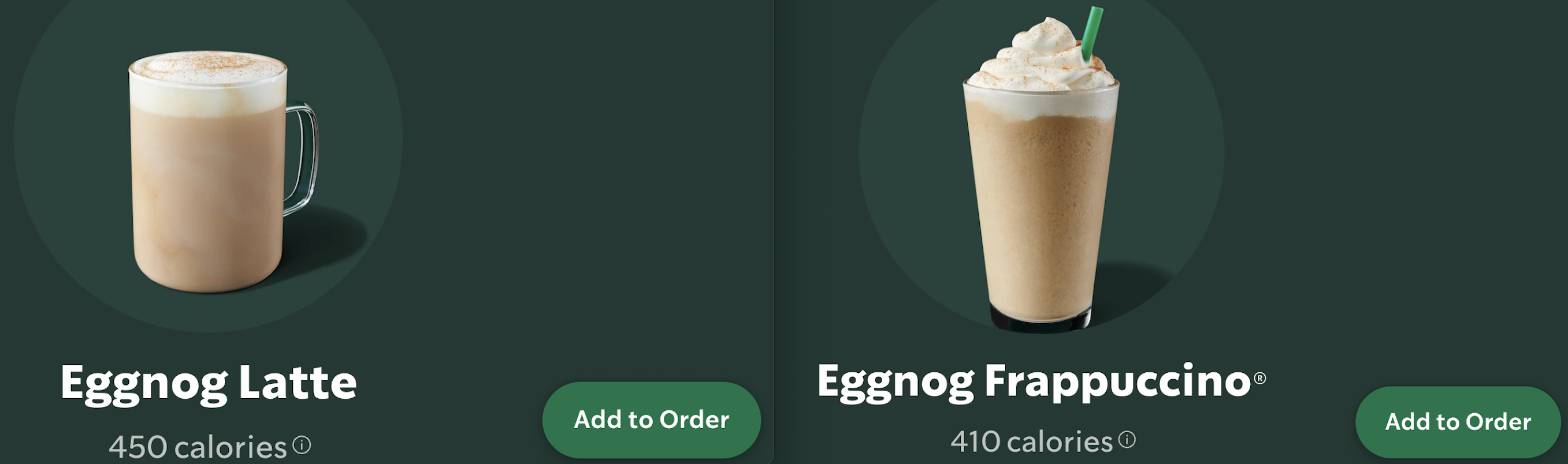 - 星巴克蛋奶咖啡,Eggnog Latte/Eggnog Frappuccino(from 星巴克官网)