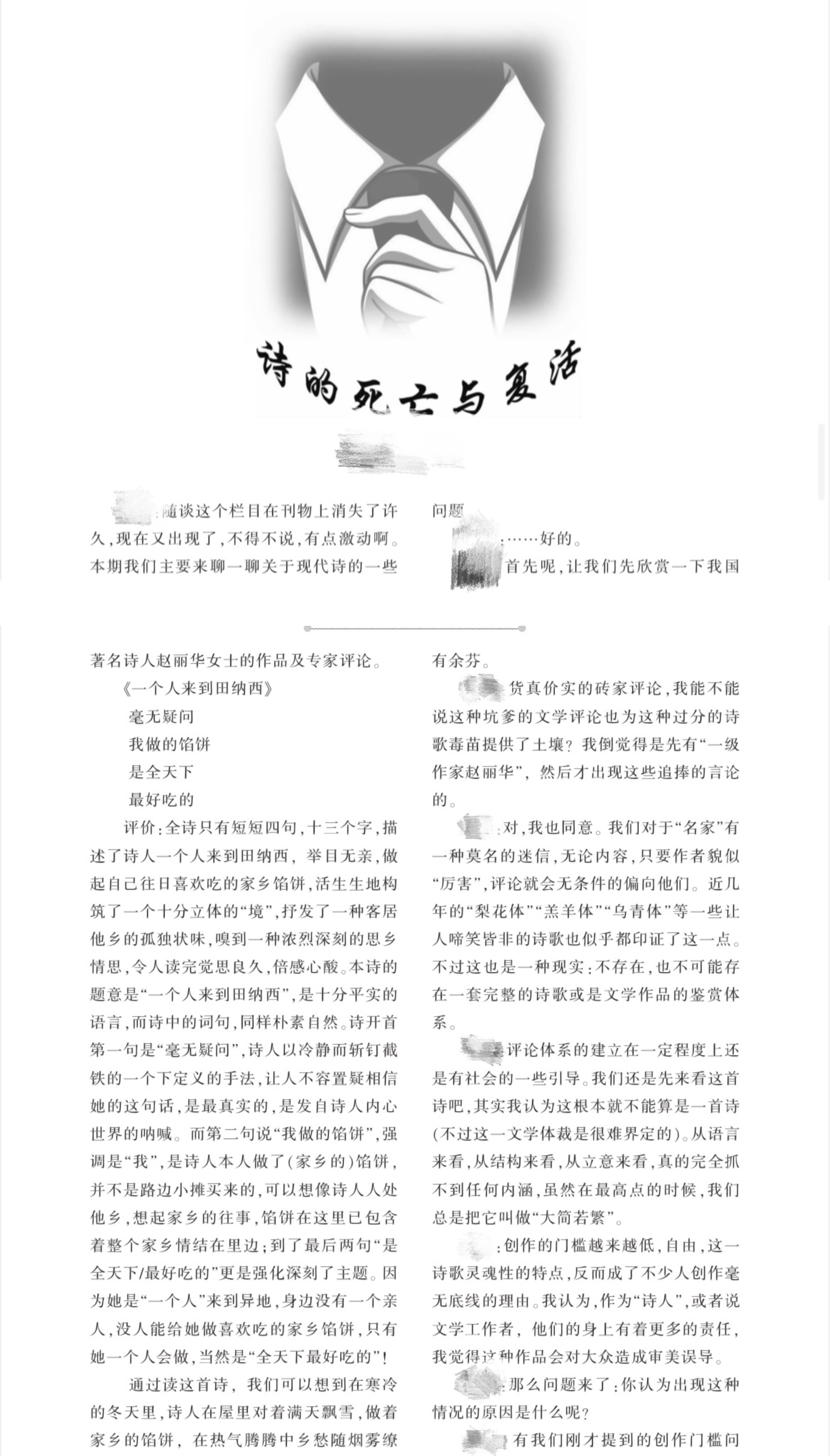 八年前,我在高中文学社举办的沙龙里与好朋友聊起了中国的现代诗歌,我们激扬文字、挥斥方遒,满怀激情又“愤怒”地批判着当时读到的诗人赵丽华的诗作,并将那天的对话整理发表在了校刊上,起名叫做《诗歌的死亡与复活》。不久前,诗人贾浅浅以相似的充满争议的姿态出现在了大众的目光中,我惊讶地发现,自己与朋友当年的讨论,时隔经年,似乎与当下正在进行的讨论主旨暗合。