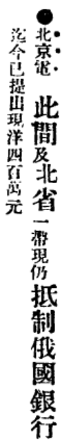 TOP1:北方各省仍抵制俄国银行,迄今已提出现洋四百万元。1912年12月20日《申报》一角TOP2:北京邮政局新发行光复纪念、共和纪念两种邮票,印有孙中山、袁总统肖像,闻孙像邮票销路较差。中华民国光复纪念邮票3分一枚1912年共和纪念2角旧票一枚TOP3:五日晚北京拿获私吸鸦片、打麻雀牌及捕暗娼人犯至提署,判罚某某若干元,其中之一人即某总长代表也。1912年12月20日《申报》一角