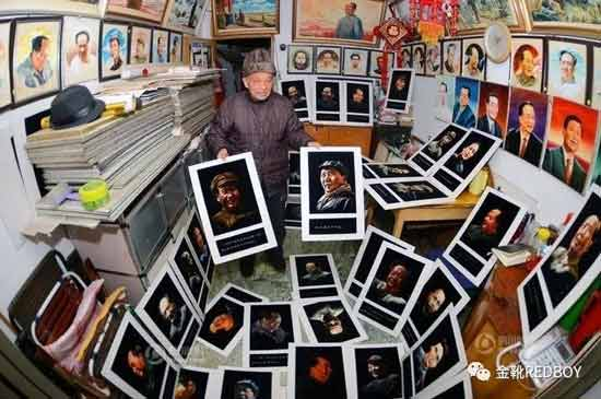 在陈德年与老伴居住的40多平方米的房子里,有一间近20平方米的客厅储藏着他20年来创作的200多幅毛主席的肖像画。