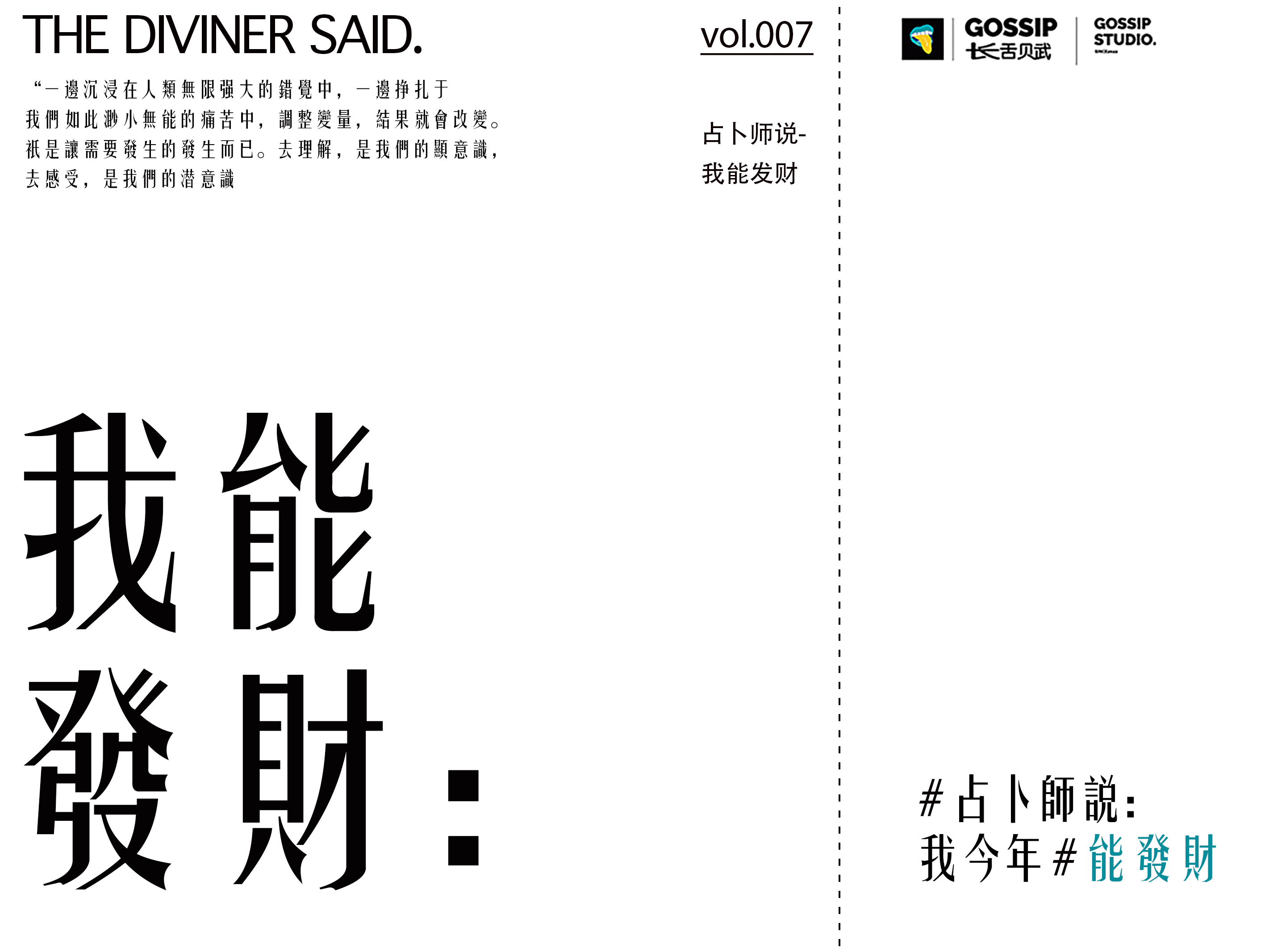 今年的财运,在若干年前也许早已明码标价,也许在未来早已窥探地一清二楚,准否,在于信否;信否,在于做否。