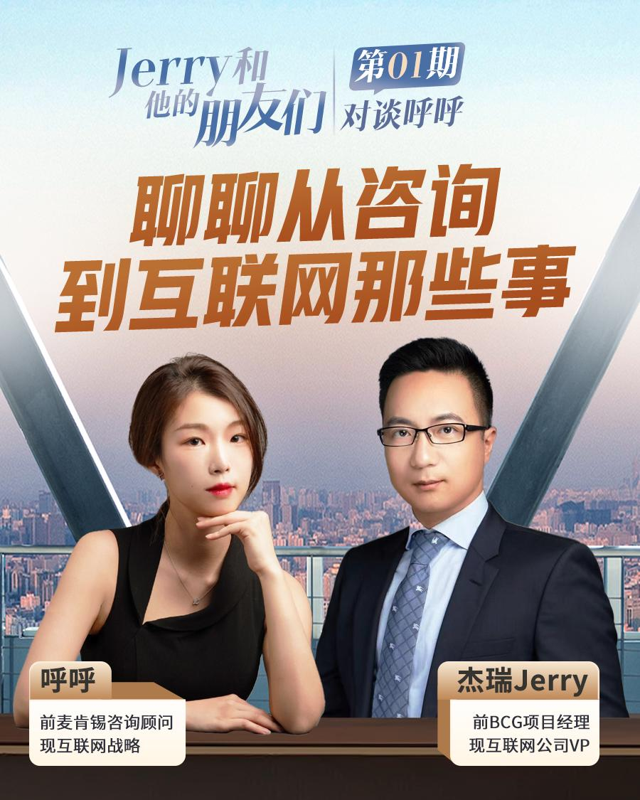 本期节目邀请到了前麦肯锡咨询顾问,现互联网战略的朋友<呼呼>@老胡and呼呼,我们将一起探讨我们在职业发展不同阶段的转型选择以及在咨询行业的那些事儿。