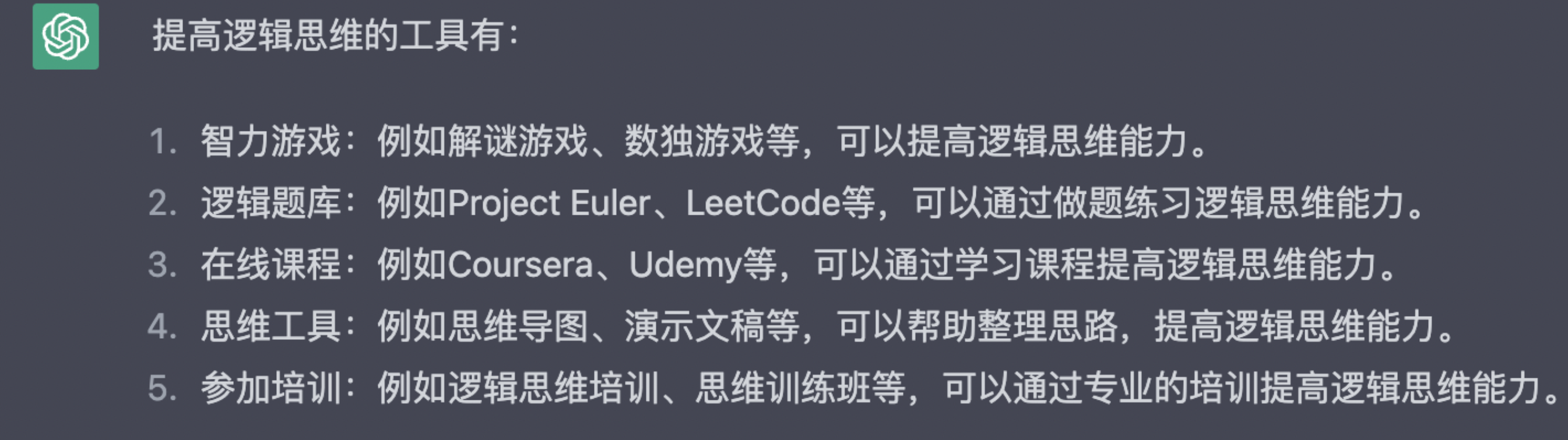 chat-gpt提供关于逻辑思维工具的答案