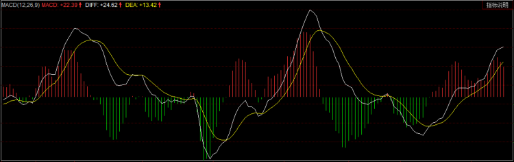 最后大家可以看一下文稿中的图片,图片是macd数据图,图中左上角写着具体的数据,DIFF线是正数还是负数都一目了然。数据的最左边你能看到MACD(12,26,9)这一串数字,这些数字指的就是计算周期,前面的12和26刚好对应DIFF线的计算周期,也就是12日均线和26日均线,而后面的9则是跟DEA黄线的计算周期有关,关于这一点我们下期再去讲解,今天大家只需要理解DIFF白线就好。