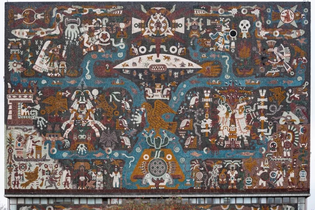 5、值得了解的南美艺术作品:格扎尔羽毛头饰(维也纳世界博物馆),墨西哥国立自治大学图书馆壁画,墨西哥城地铁标识设计等;