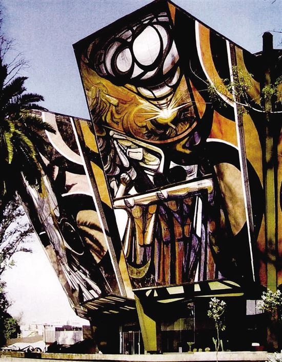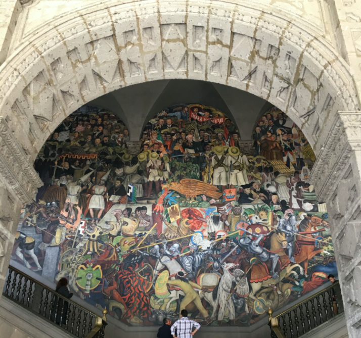 张型在墨西哥城旅行时拍摄的市政厅壁画