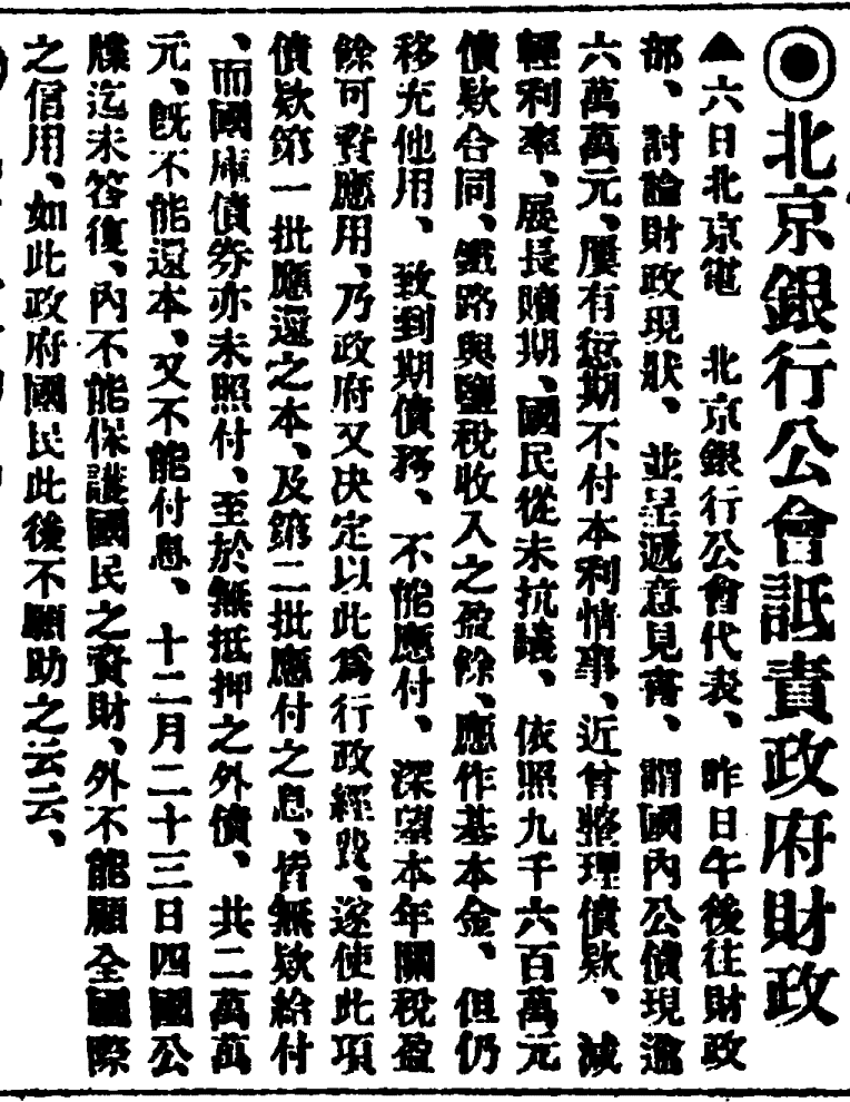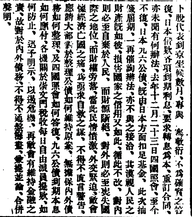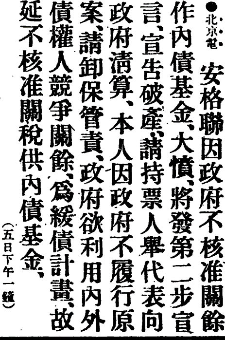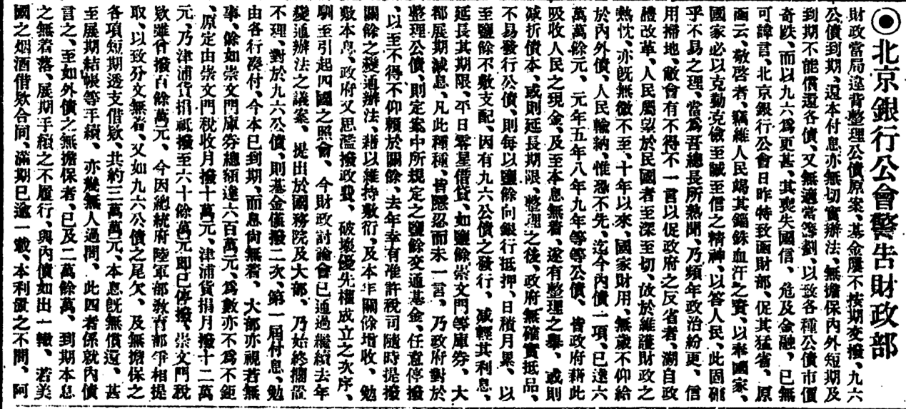 1. 北洋政府债务继续膨胀,还款一拖再拖,各方债主难以安抚。