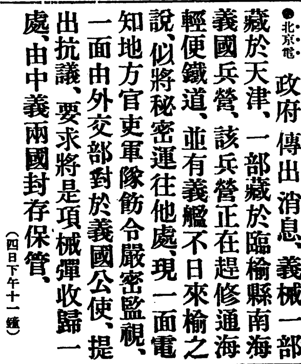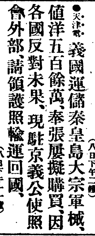 4. 意大利军械采购案没钱还想要,意大利方面要求尽快发放护照将军械运回本土。