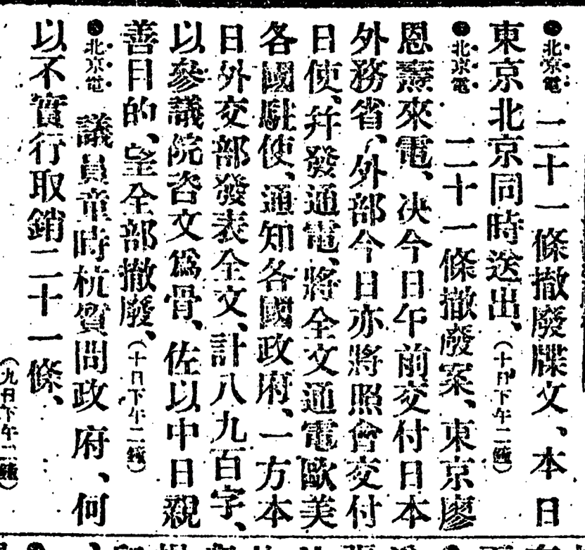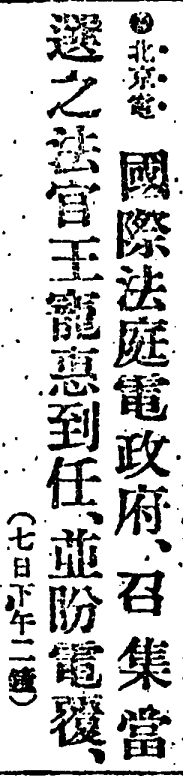 c)国际法庭发电,召前国务总理,法学家王宠惠尽快到任。