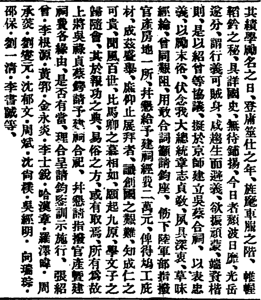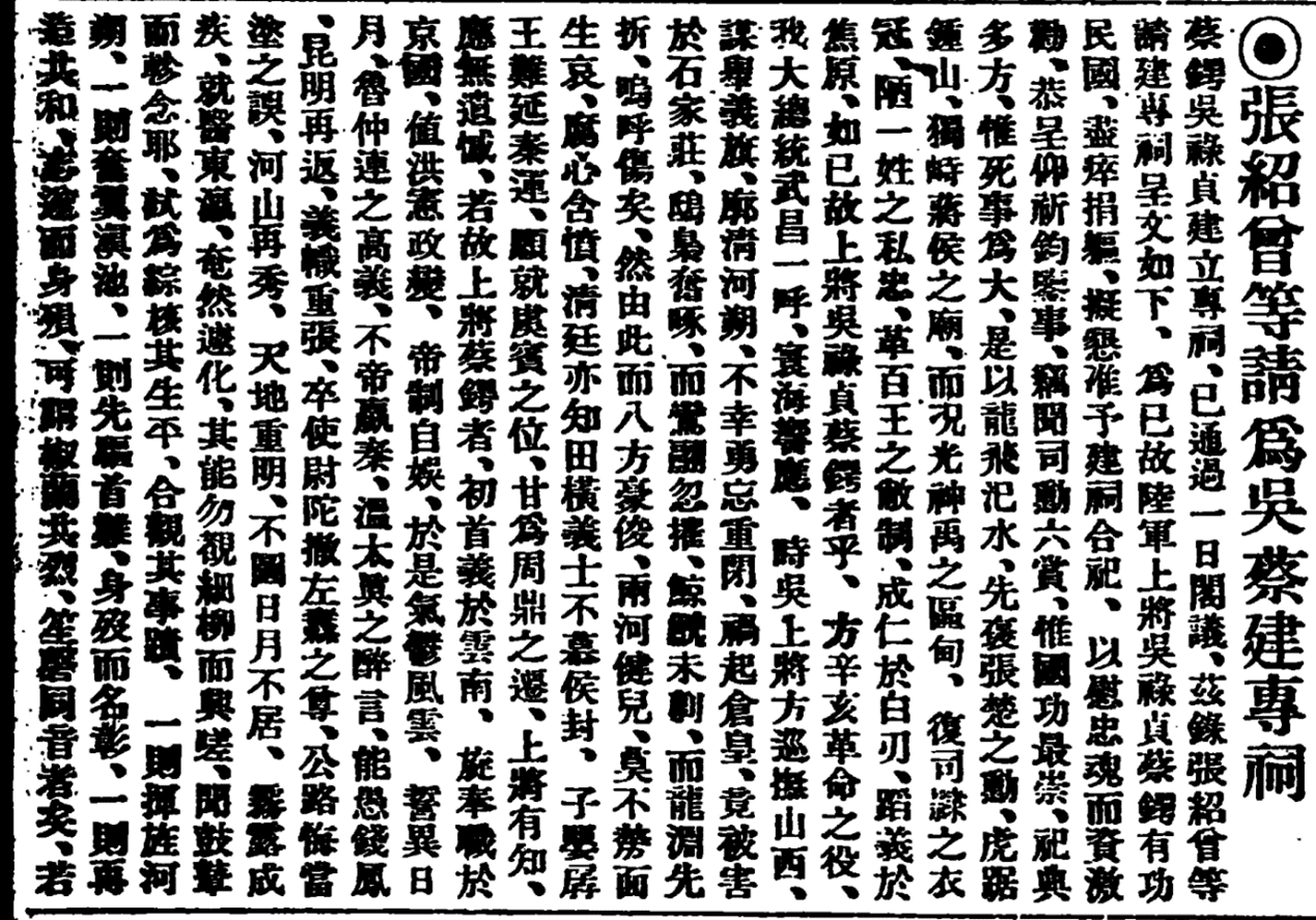 a) 内阁通过决议,通过由总理张绍曾提出的为蔡锷与吴禄贞建立专祠,由政府组织四时祭祀的提案。