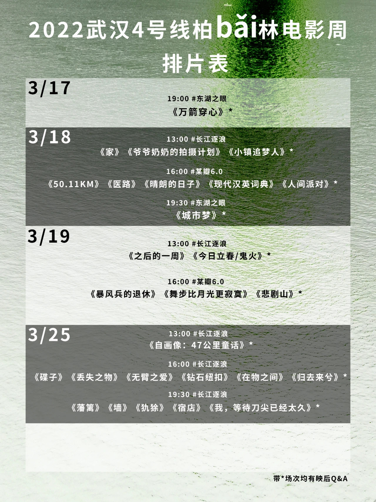 稍息片刻后,就让我们从面象空间站出发,乘坐武汉地铁4号线,到柏(bǎi)林电影周看看武汉本土的独立电影创作者们,在这两年里都做了什么电影!