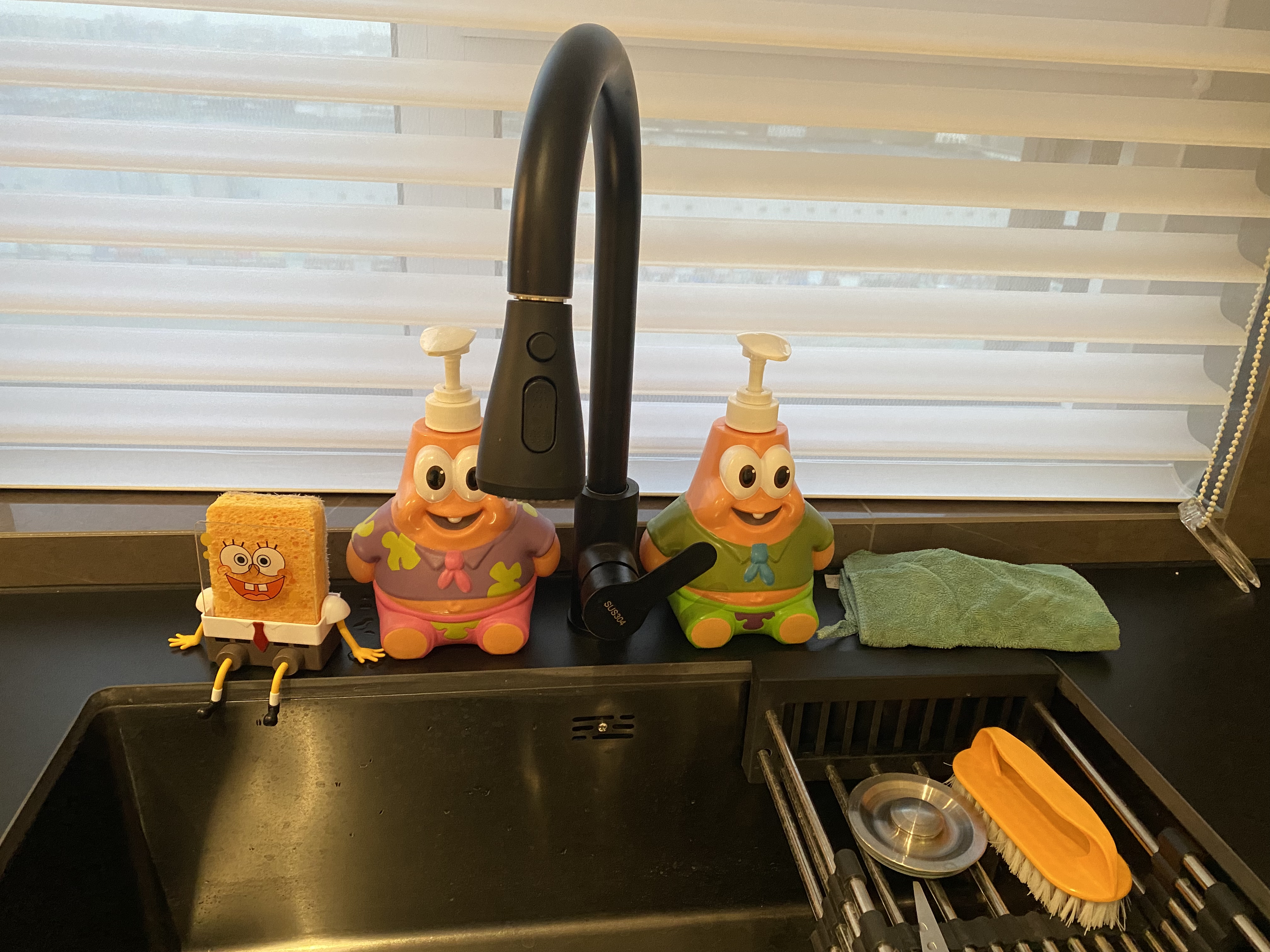 我们在吃晚饭的时候,又发现了其他的细节,比如有趣的派大星洗手液,M豆鸡蛋架,甚至火锅底料都要摆的整整齐齐!希望一年后还是这么整齐;)