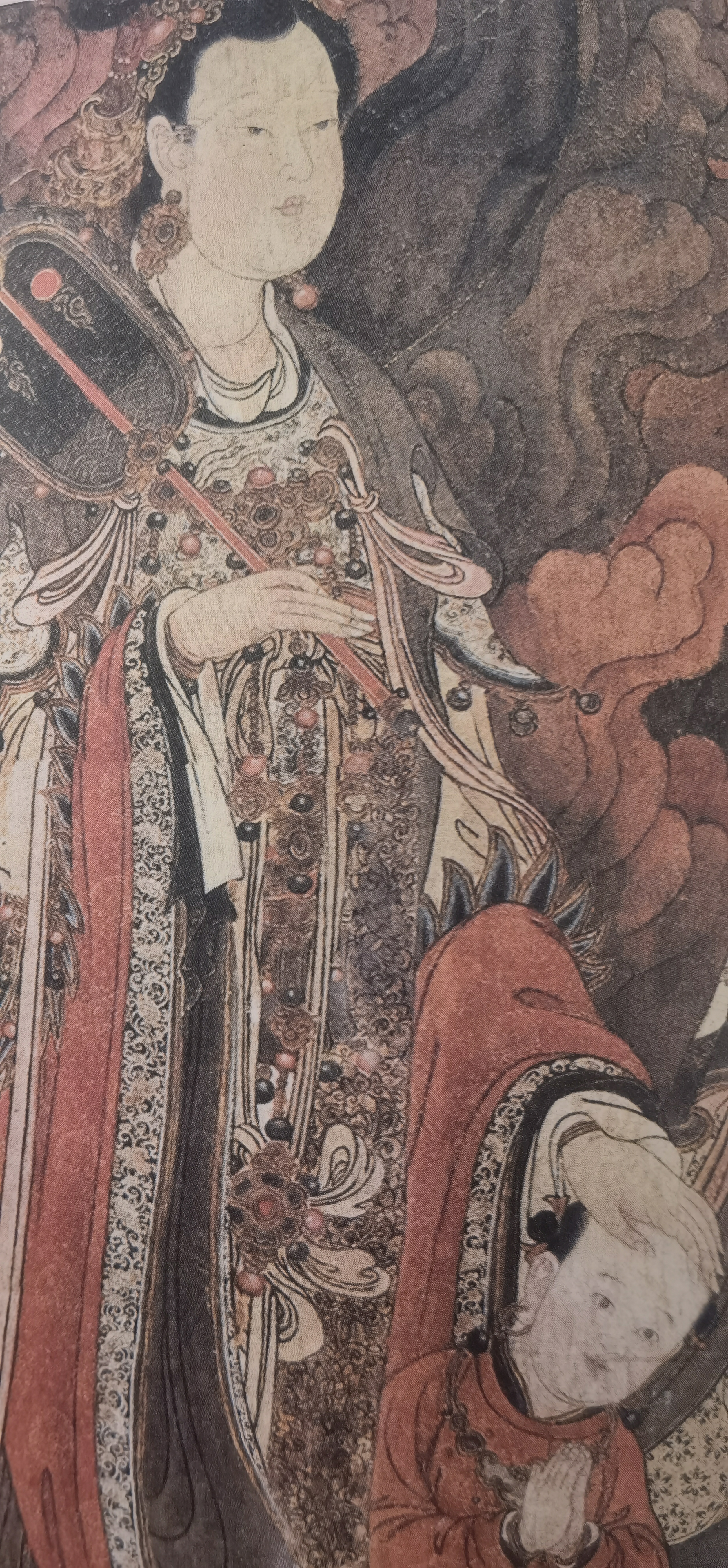 - 敦煌壁画和敦煌绢画的艺术表现形式,在唐代完美地形成了汉民族艺术中的线与色彩表现的最高峰,但伟大的唐代艺术家们,仍然能把握住汉民族对“线”审美的不舍追求,让线的表现始终在画面中保持主导地位,即“线领导于色,色服从于线”。这种表现形式从唐代之后至宋代尤为兴盛,成为一套完整的汉民族艺术语言体系。