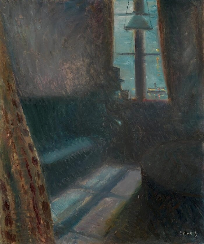 完成于1890年,作品是一个昏暗的、看似神圣的房间沐浴在昏暗的光线中,实际上这个空间里只有阴影和寂静,是蒙克对去世的父亲复杂和隐晦的纪念。