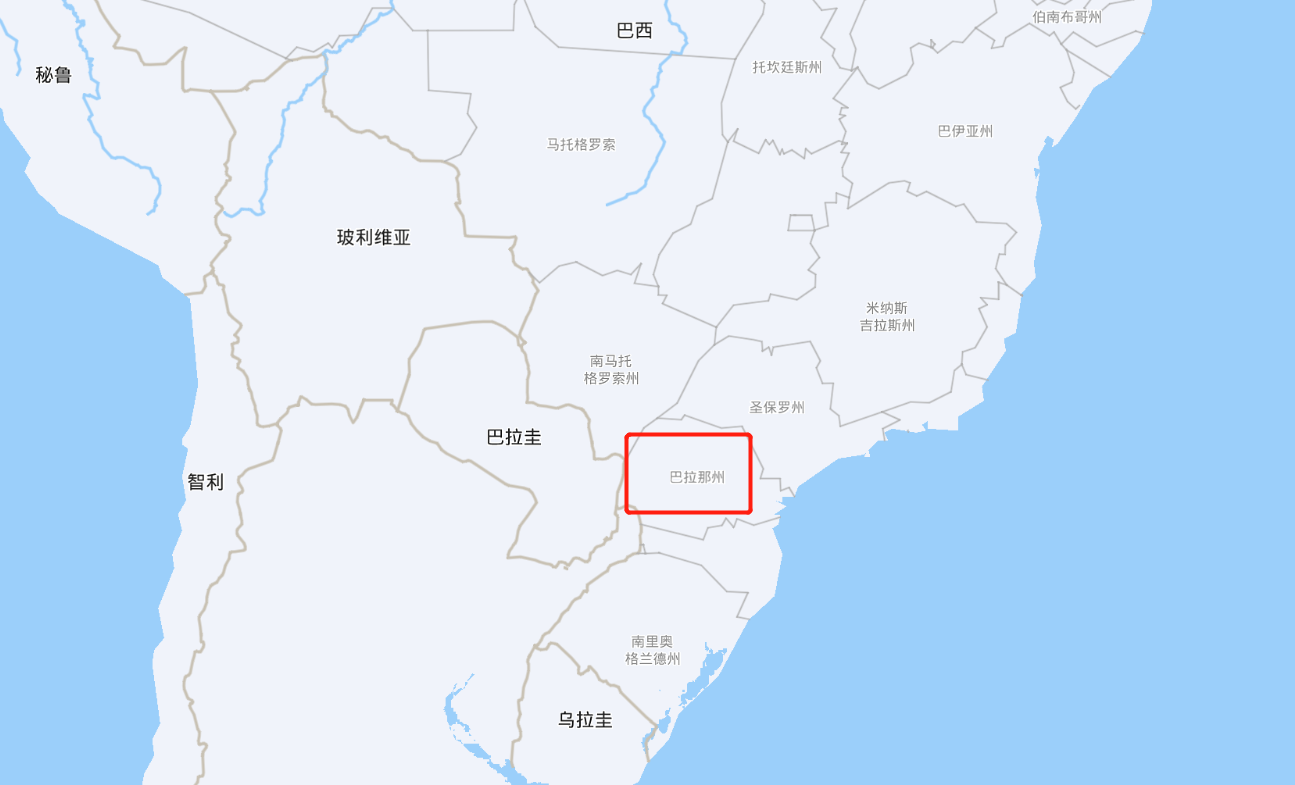 帕拉那邦(Paraná):即巴拉那,现在属于巴西二十六个州之一,在圣保罗州南边,地势自东向西递减。该州伊瓜苏市是巴西第二大旅游中心。