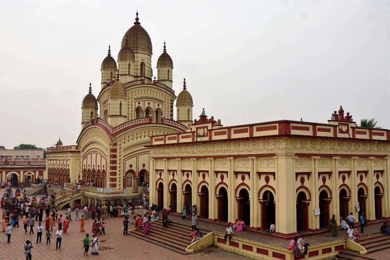 卡里(Kali)女神庙:也译“迦梨”。印度教三大主神之一湿婆的妻子雪山神女帕尔瓦蒂的化身,通常形象为皮肤青黑,口吐血唇,额头跟丈夫湿婆一样有三只眼睛,手提武器与恶魔的头,脚下踩着丈夫湿婆神。“加尔各答”的意思即是“卡里的沐浴场”。