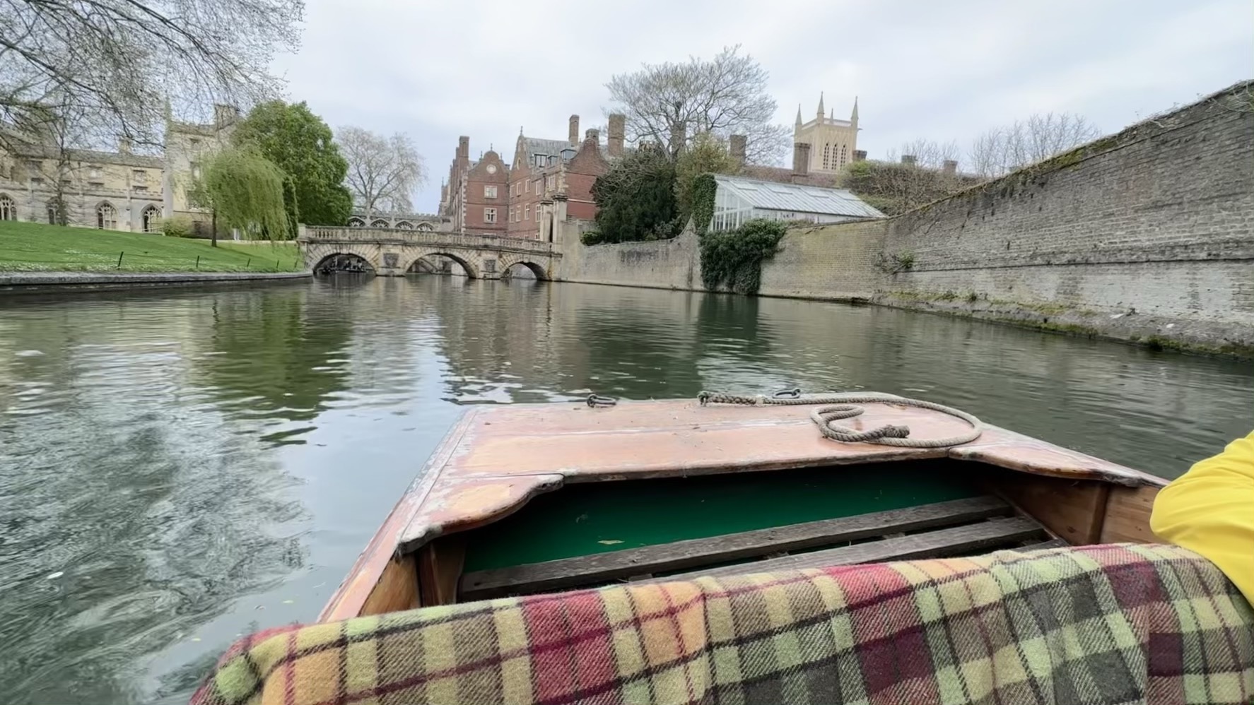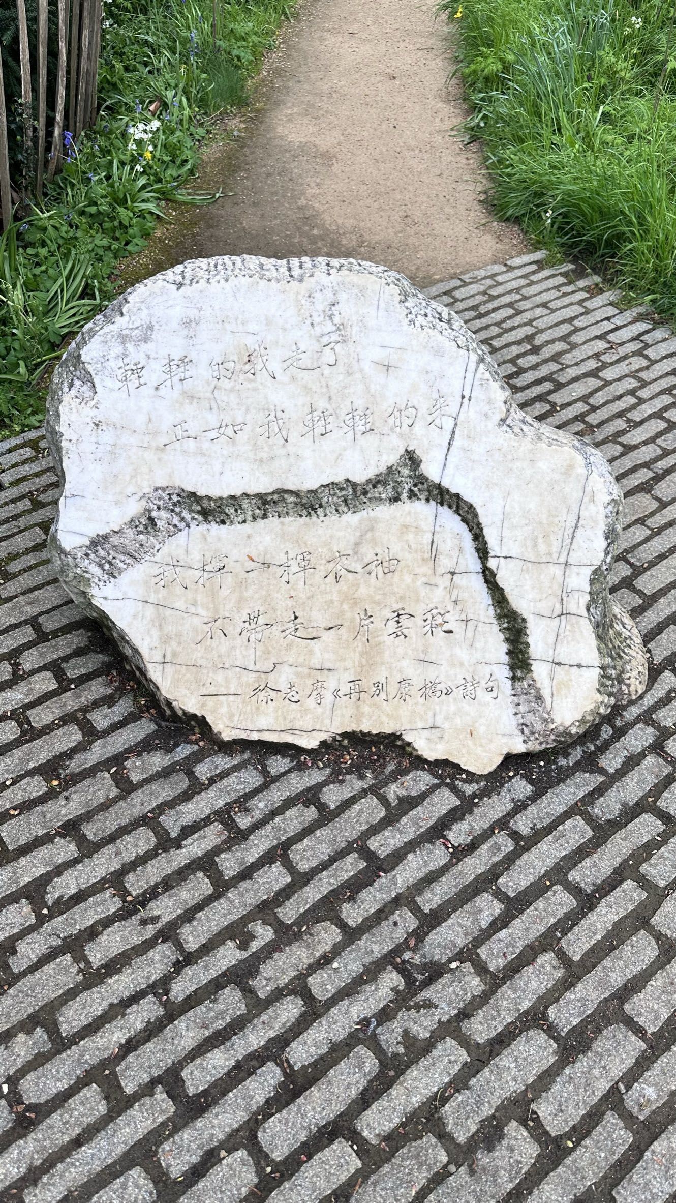 康河上的游船,剑桥大学国王学院里纪念徐志摩的石碑