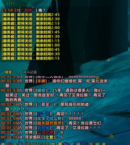 关服倒计时,玩家们在世界频道和游戏告别 23:50