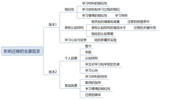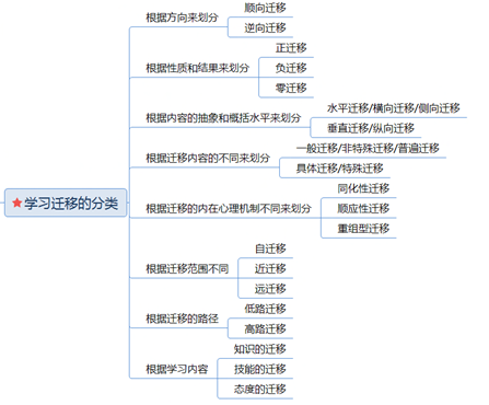 - (1)原话考法:迁移是学习的普遍特征/必要条件。任何学习都存在迁移现象,其中有意义学习多为正迁移,机械学习多为负迁移;凡是有学习的地方就会有迁移,没有迁移就没有学习。