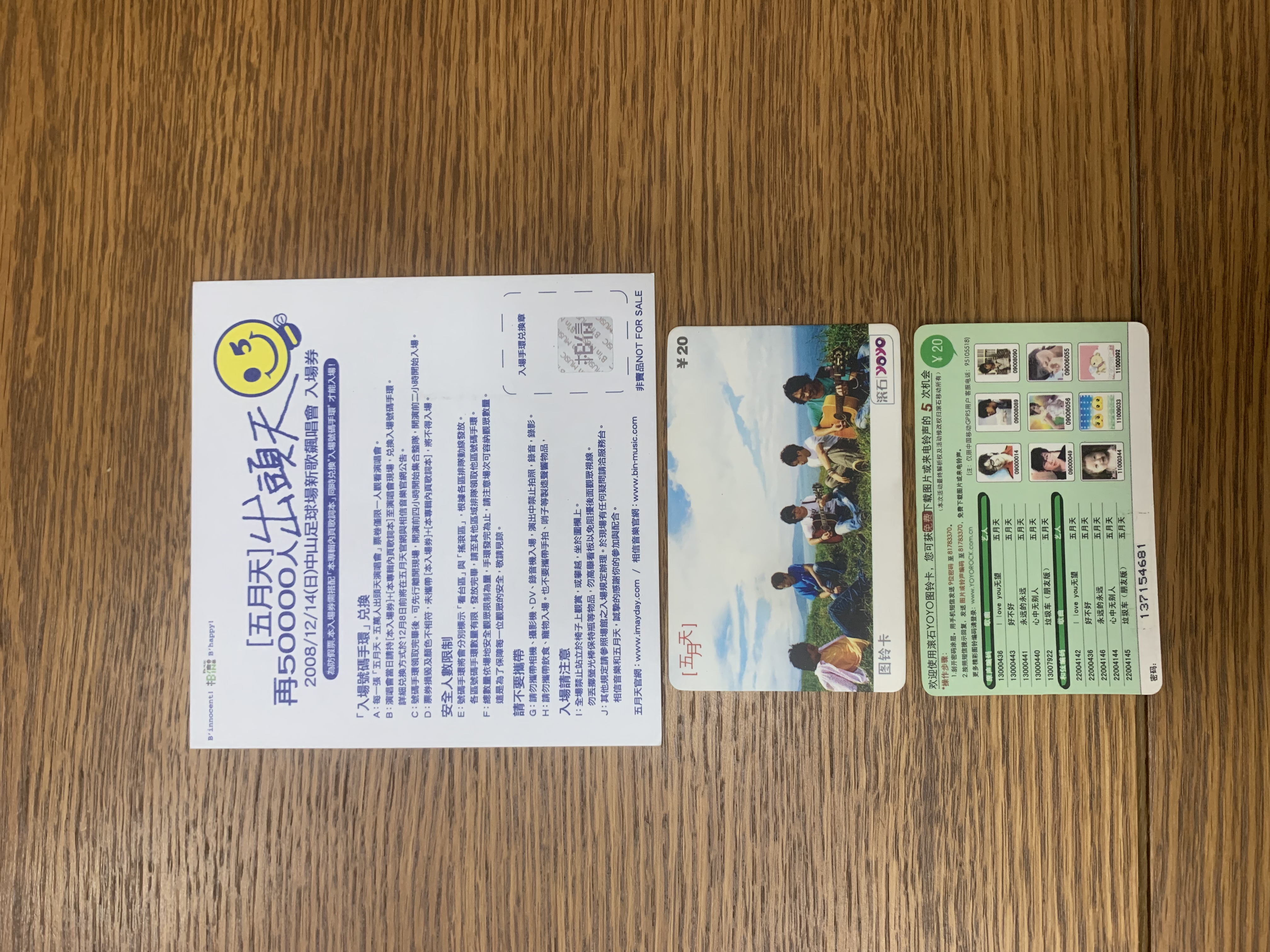 29:59 五月天CD里面都有什么,图为古早的“图铃卡”和专辑内赠送的门票,聊天中说错了,这张卡应该提供的是手机铃声下载的。