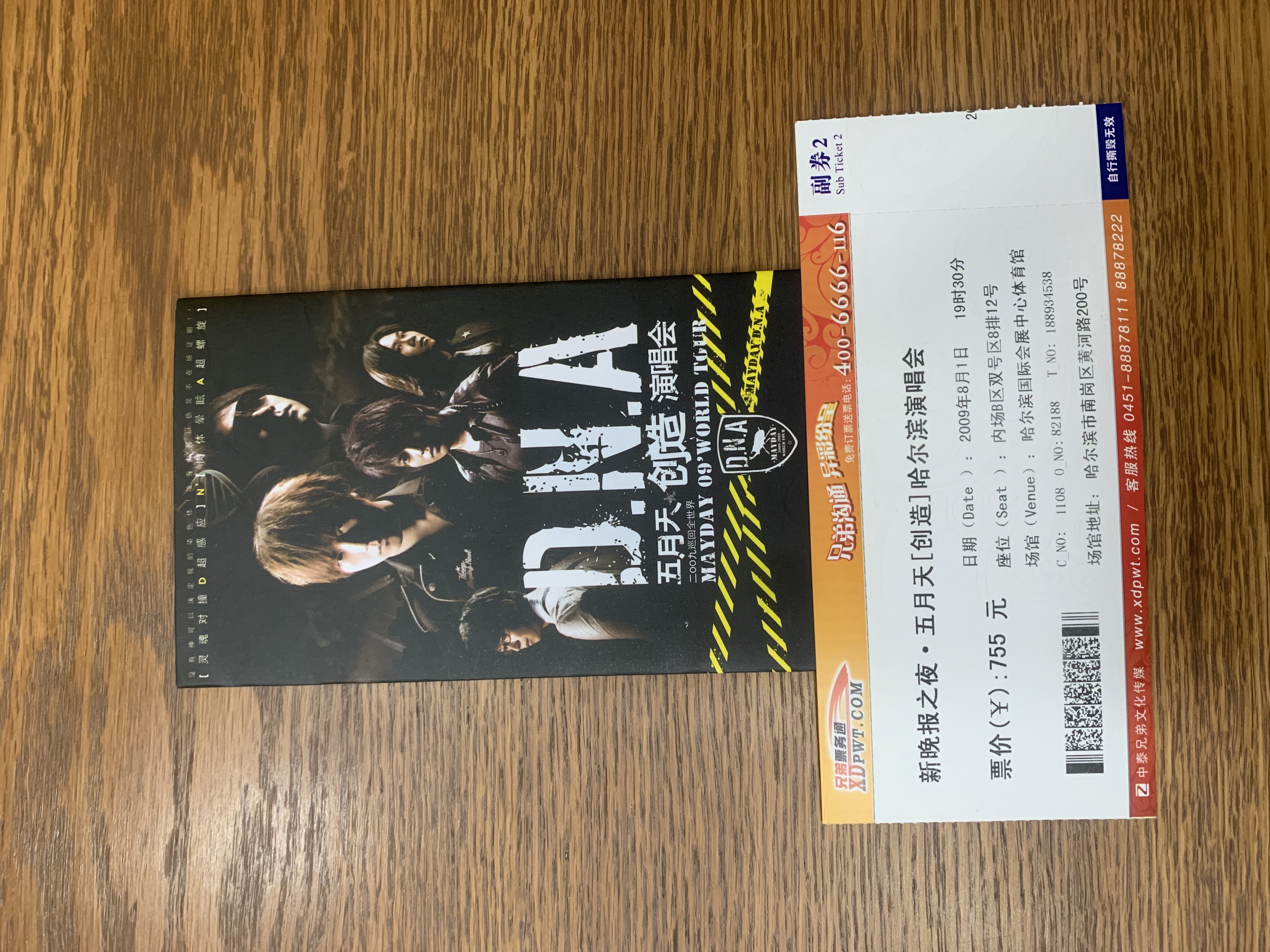19:29 轮子分享是如何从初中开始入坑五月天的。 22:00 图为轮子在2009年第一次去五月天演唱会的票根