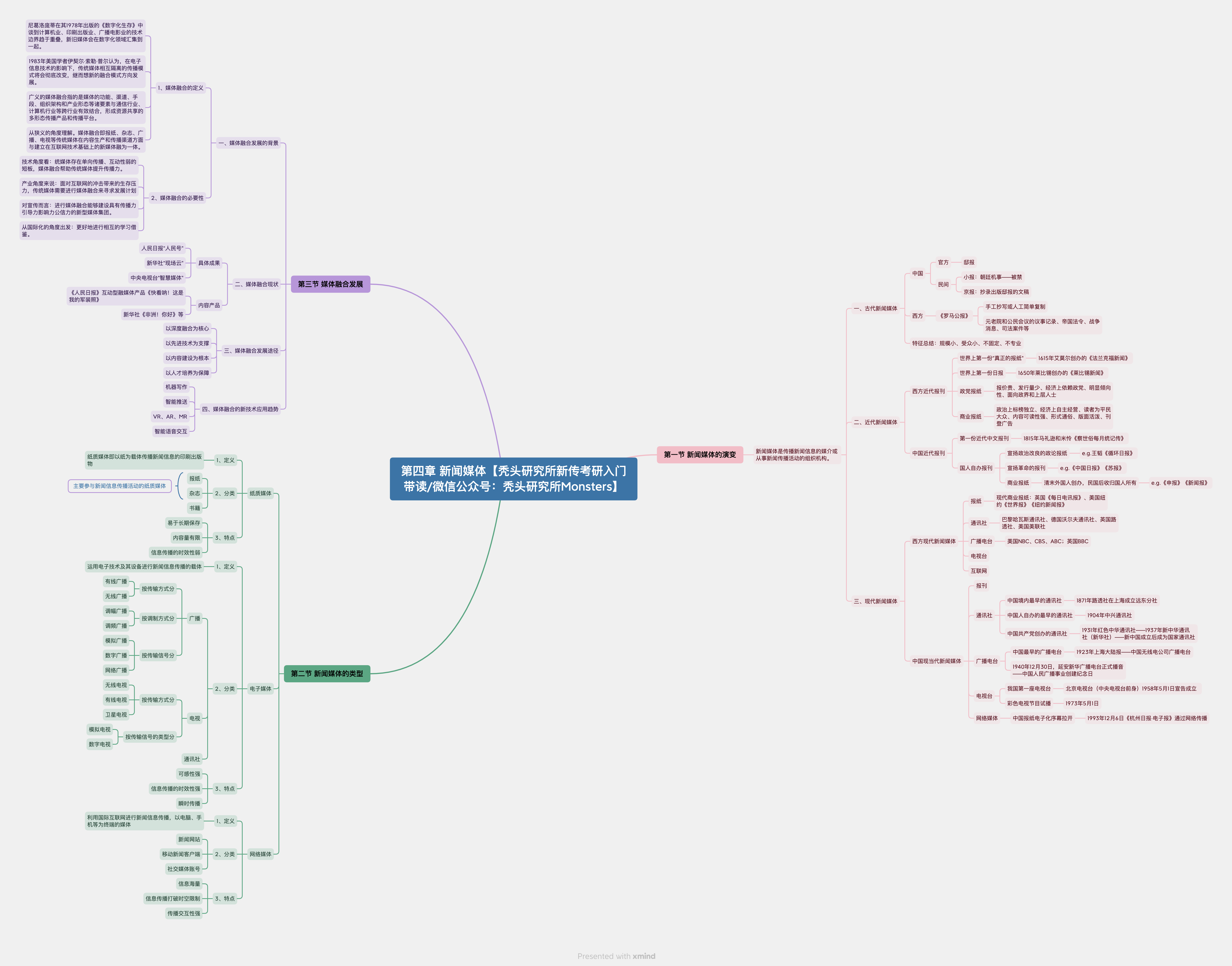 3、19世纪中后期,西方的报社发展成为现代资本主义的大企业,同时其他类型的新闻媒体也纷纷诞生,包括世界上第一家通讯社哈瓦斯通讯社,它与沃尔夫通讯社、路透通讯社、美国联合通讯社并称为“世界四大通讯社”。1920年广播媒体诞生,1936年世界电视事业也开始登上历史舞台。1969年“天下第一网”的诞生宣告了网络媒体时代的到来。新闻史学界一般认为新文化运动开启中国现代媒体时代,将1949年以后认定为当代新闻事业阶段。1915年陈独秀在上海创办《青年杂志》(后改名《新青年》)、1918年陈独秀和李大钊创办《每周评论》,开启了新文化运动。英国路透社1871年在上海成立远东分社,是中国境内最早的通讯社,1904年骆侠挺在广州创办的“中兴通讯社”是国人自办最早的通讯社。1931年中国共产党创办红色中华通讯社,1937年改名为新中华通讯社简称新华社,新中国成立后成为国家通讯社。1923年成立的上海大陆报——中国无线电公司广播电台是中国最早的广播电台,1940年12月30日,延安新华广播电台正式播音,这一天被确定为中国人民广播事业创建纪念日。1958年5月1日北京电视台成立,也是我国第一座电视台,也就是中央电视台的前身。中国的网络媒体始于20世纪90年代。通过对新闻媒体发展历程进行梳理可以发现,新闻媒体的诞生、迭代发展都与受到其所处的时代、社会、经济、科技等因素的影响。这一节的内容可以结合新闻史的部分进行深入学习~