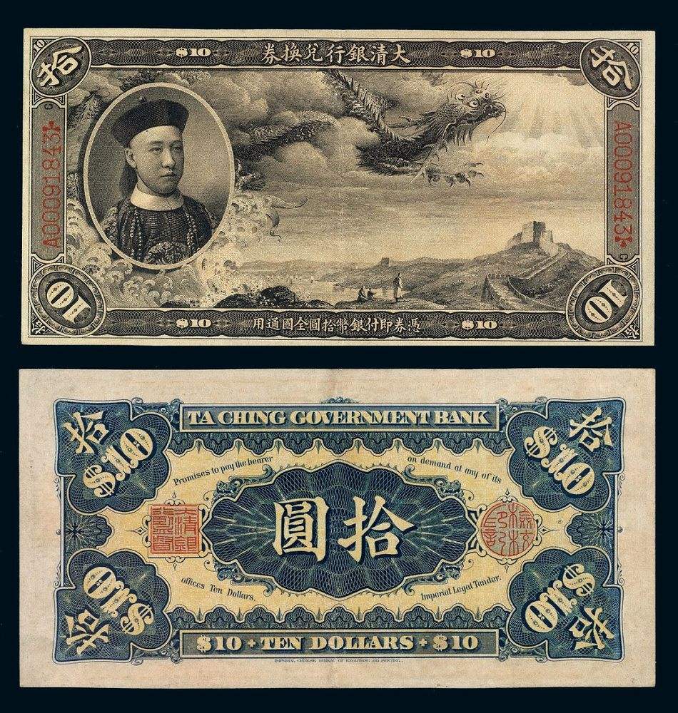 大清銀行兌換券拾元券上的摄政王载沣照片