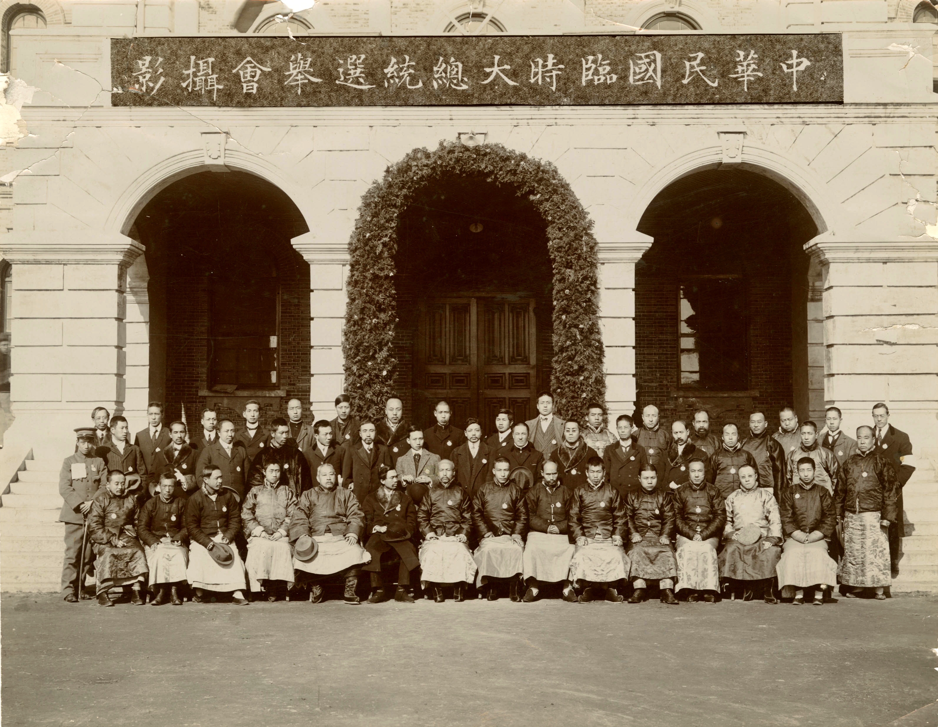 中華民國臨時大總統選舉會攝影。該照片上共有47個人物。其中包括來自十七個省的43名代表,以及監票員劉之潔(左側着軍裝站立者)等工作人員。前排右6湯爾和,右9王寵惠;中排右4趙仕北,右10林森;後排右1王正廷,右2胡瑛,右10居正,右11吳景濂。