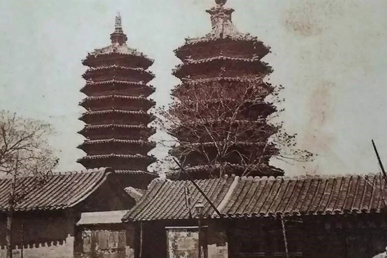 北京庆寿寺双塔(始于金代、1954年因修路被拆除)