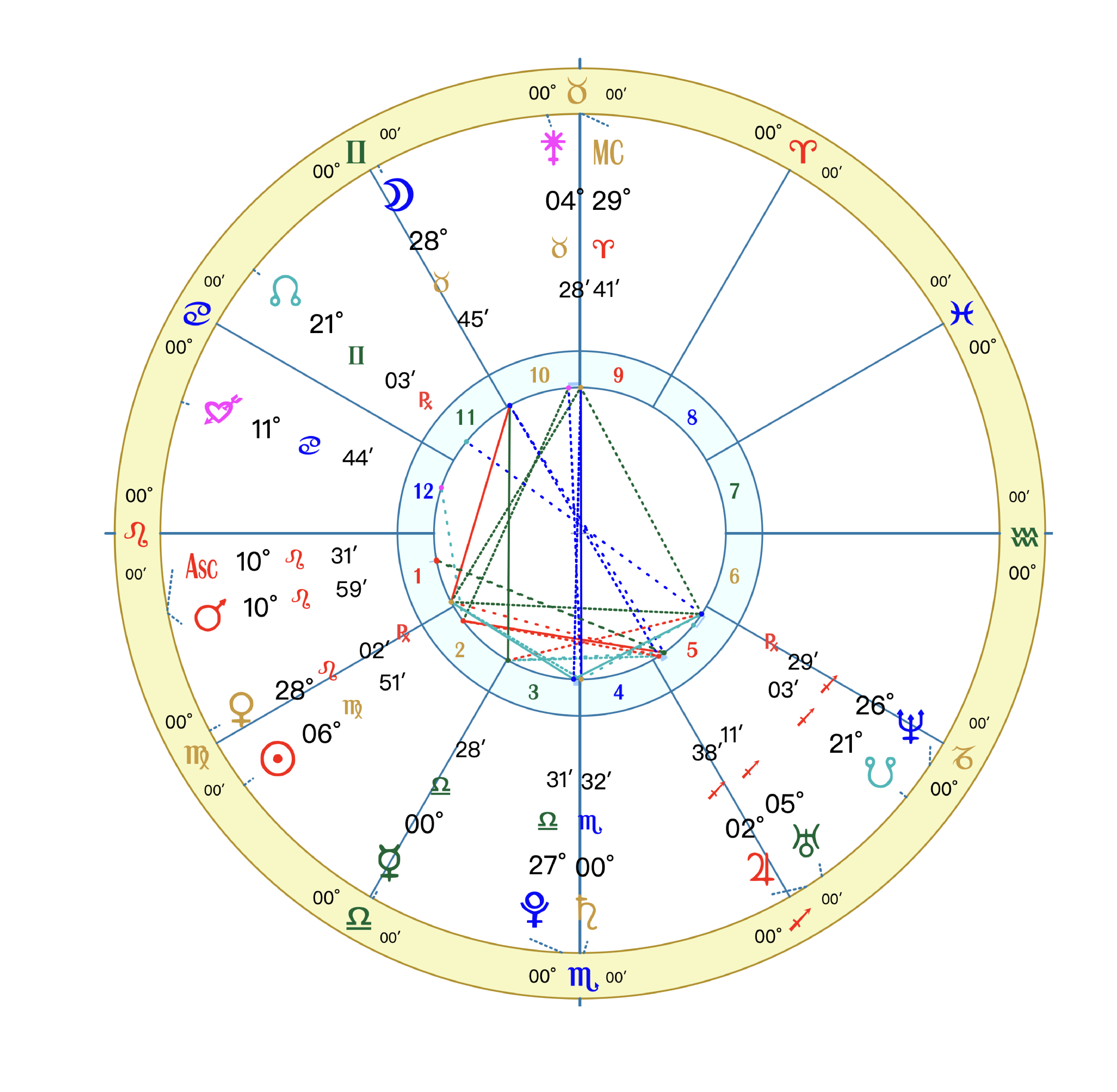 是看了盘之后忍不住就想聊他的盘他的人生他的一切!03:01上升狮子座,木星射手5宫,全盘有很集中的狮子射手能量,水星作为太阳星座守护星也有很瞩目的能量08:40 T三角相位揭示大张伟在冲突下的人生选择与重大转变11:48 冥王星三宫13:35 月亮金牛、土星4宫、太阳2宫关于物质积累的剧情14:25 上升狮子的6、7宫同一颗守护星土星花儿乐队-19岁花儿乐队-八月最后一天