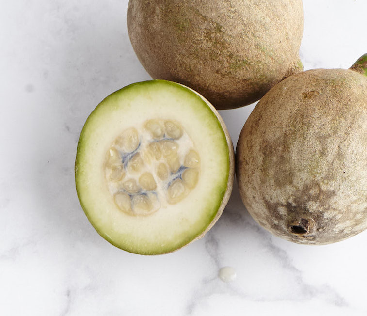 “简尼巴波”果(genipapo):巨大的genipapo发现于中美洲和南美洲。果肉中含有京尼平(genipin),其在有氧的时候呈蓝色,因此genipapo曾在巴西食品界掀起“蓝色狂潮”。当不加糖生吃时,成熟的genipapo会有酸味。
